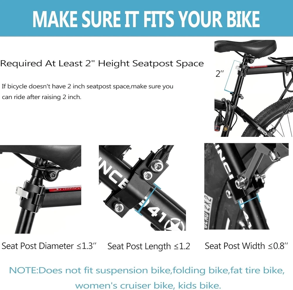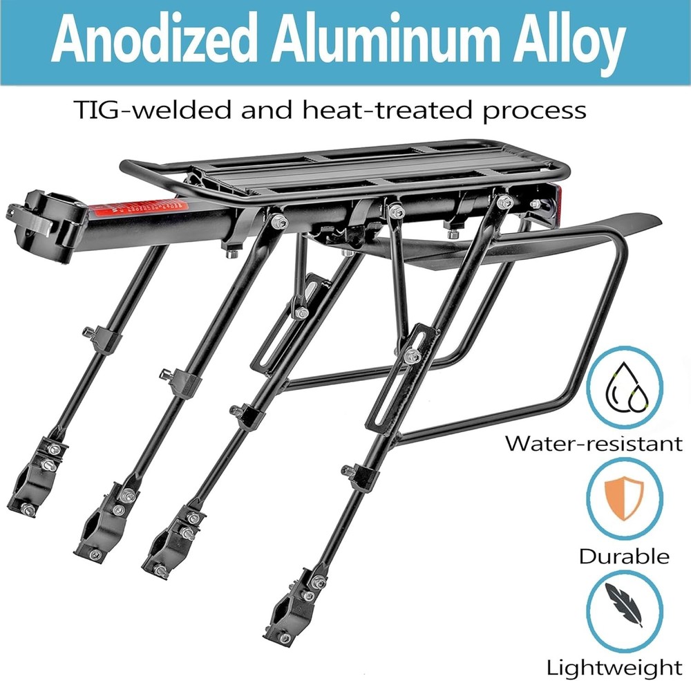 Rear Bike Rack Aluminum 310LB Capacity Quick Release Large Reflector Fender ‹ › ‹ › ‹ › ‹ › ‹ › ‹ › ‹ › ‹ › ‹ › Rear Bike Rack - Aluminum with 310LB Capacity - Quick Release Large Reflector Fender Product Features: Constructed from high-quality hard Aluminum Alloy for maximum durability and a load capacity of 310lb. TIG-welded with a thickened frame and main tube, featuring a smooth, rust-proof coating for beautiful aesthetics and longevity. Quick release clamp allows for effortless mounting and removal from the seat post, letting you easily adjust your seat height. Included are quality wrench and Allen key, alongside clear installation instructions for a hassle-free setup. Large size reflector enhances visibility for safe night cycling, while the adjustable, removable fender keeps your luggage dry in adverse conditions. Equipped with stainless steel screws and anti-loosening, shock-proof nuts to ensure stability on rough terrains and resiliency against rust from light rain. Enlarged side wings protect your panniers or bags from bike spokes and wheels, enhancing rear cargo safety. Adjustable structure fits most bike frames from 26" to 29", with a top panel adjustable between 16"-18" in length and telescopic side support rods from 11"-15.75". Why Choose Our Rear Bike Rack? Elevate your cycling experience with our Rear Bike Rack, expertly designed for strength and versatility. Constructed from materials that withstand loads up to 310 pounds, this robust rack not only accommodates your luggage with ease but does so while ensuring your ride remains smooth and stable. The quick-release mechanism allows for seamless adjustments, empowering you to customize your bike height in seconds. With added safety features like a large reflector and adjustable fender, you can cycle confidently even in low visibility and wet conditions. Don’t risk your cargo or safety with inferior products—invest in this aluminum rear bike rack designed with durability and functionality at heart. Get yours today and redefine your biking adventures! Shipping Free & Fast Shipping - We offer free shipping to most of the USA with a normal delivery time of 3-7 days. However, due to the current situation, additional delivery time (up to 3 weeks) may be required for some items. Alternative Carriers - We may use alternative carriers (e.g. USPS, FedEx, UPS, etc.) to ensure your package arrives safely and on time. Due to the use of multiple carriers, we are unable to provide a tracking number automatically. Handling Time - Orders are processed and shipped within 1-2 business days of receiving cleared payment. Shipping Restrictions - Shipping to Alaska, Hawaii, Puerto Rico, Guam, and other US territories may incur shipping charges or delivery restrictions. Please contact us before ordering, or your order can be refunded/cancelled. State Restrictions - There may be restrictions based on your state of purchase. For example, certain items may not be shipped to California due to state regulations. Contact for Tracking Updates - If you require tracking updates or have any concerns about the delivery of your order, please feel free to contact us, and we will be happy to assist you. Return 30-Day Hassle-Free Returns - We want you to be completely satisfied with your purchase. If you are not, you can return the item within 30 days of receiving it for a full refund or exchange. Easy Return Process - To start a return, simply contact us and we will provide you with a prepaid return shipping label and detailed instructions. Restocking Fee - There are no restocking fees for returns. However, the buyer is responsible for return shipping costs if the return is not due to a seller's error. Refund Processing Time - Refunds will be processed within 5 business days of receiving the returned item in its condition. Payment We accept all major credit cards, PayPal, and Apple Pay for your convenience. Your payment information is secure and encrypted to ensure a safe and seamless transaction. Please complete your payment within 3 days of purchase to avoid any delays in shipping. Feedback Your feedback is extremely important to us. We strive to provide the best products and customer service possible. If you are satisfied with your purchase, please take a moment to leave us a positive review. If you have any concerns or issues with your order, please contact us before leaving negative feedback. We are committed to resolving any problems and ensuring your satisfaction. Contact Us If you have any questions or concerns, please feel free to out to our customer support team. You can contact us through the eBay messaging system. We are available Monday to Friday, 9:00 am to 5:00 pm EST, and we will do our best to respond to your inquiry within 24 hours. Buy it now and enjoy a pleasant shopping experience! Item Weight: 1.83 kg Unit Quantity: 1 Rack Type: Bike Features: Anti-Theft Lock,Protective Padding,Rust Free,Quick Release,Adjustable Fender,Large Reflector,Weather Resistant,Enlarged Side Wings,Easy Installation Capacity: 310 Mounting Type: Rear Seat Mount Color: Black