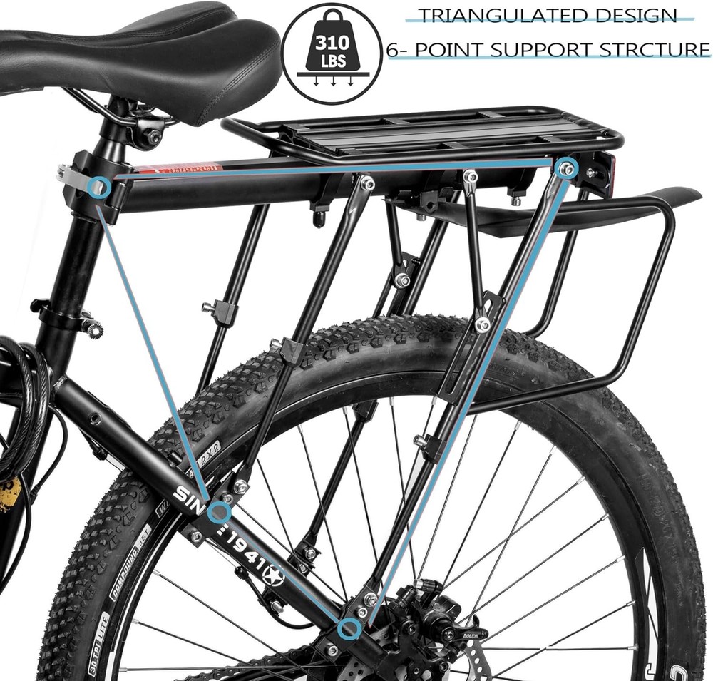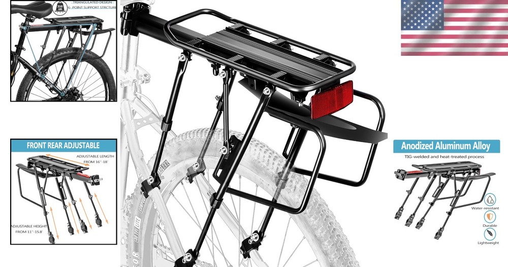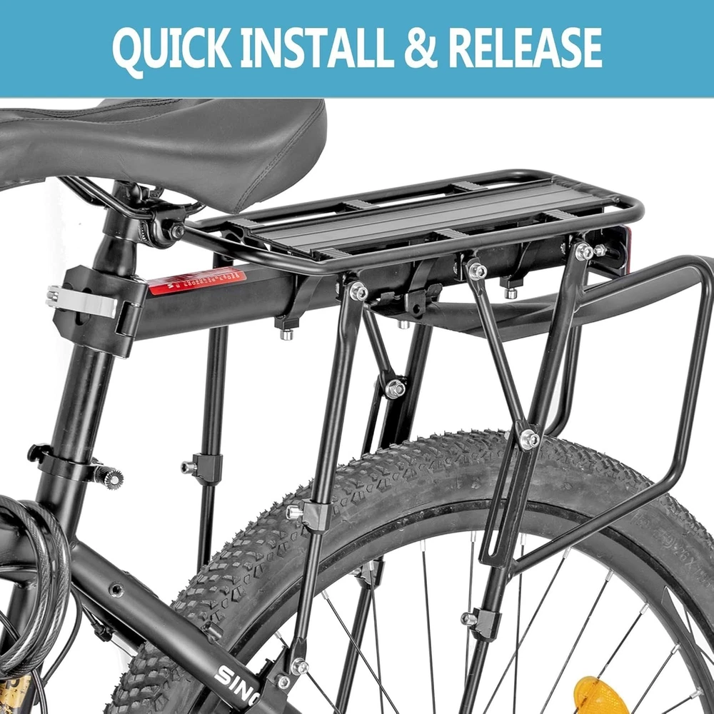 This rack is an absolute game-changer! Super sturdy and holds all my gear without a wobble. Love how quick it is to pop on and off, and the big reflector adds awesome safety. Total bargain for the quality!