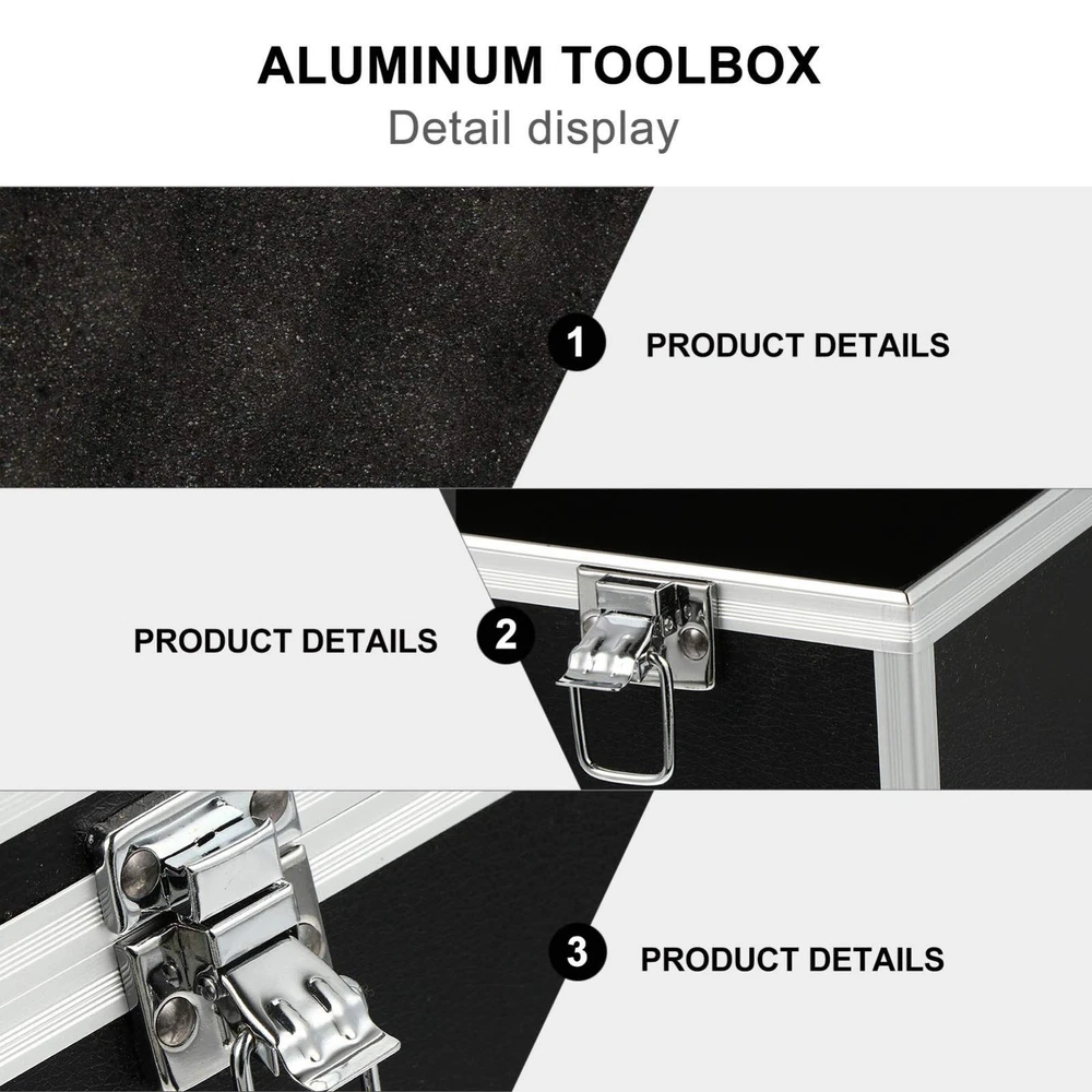 Solid and Durable Material:This toolbox is made of ABS , aluminum alloy and foam inserts, solid and durable, resistant to impact and not easy to crack. Designed with a size, it is a good choice for carrying your power tools, hand tools, and various hardware Proper Size and :Size information: 29cm/11.4 inch in length, 16cm/6.3inch in width, 15cm/5.9inch in height; Thismetal toolbox is equipped with an easy-to-grip solid handle on the top, combined with its lightweight structure, just grab and go Double Security Lock Design:This tool box comes with 2 lockable hinge to prevent internal tools from accidentally falling out while being carried, keeps your valuable tools safe Add Foam Insert for Better Protection:The tool case is equipped with sturdy crash- resistant black shell and shockproof inner material, able to withstand large impact without being damaged and effectively protects your stuff in great safety Multifunctional Toolbox for Widely Use:This multipurpose tool organizer box can well organize your repair tools, bringing convenience to all kinds of maintenance work, such as auto repair or appliance repair. Also, it allows you to easily store fishing tools, craft supplies, hardware and sewing supplies in an organized manner to meet your different needs