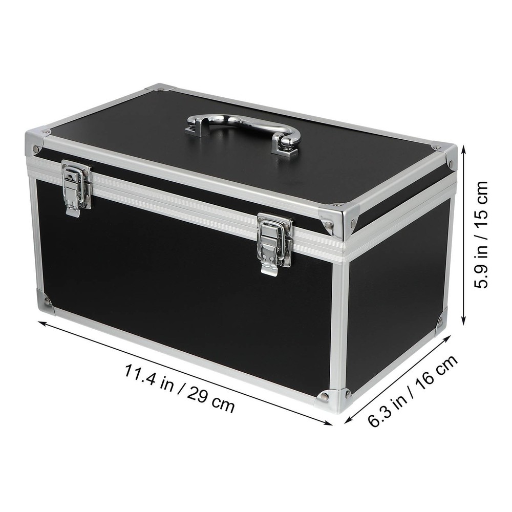 Features - : Equipped with sturdy crash- shell and shockproof foams inner material - Durable: , it is not easy to . - Practical: It is able to withstand large impacts without being damaged and effectively protects your stuff in great safety - Works Well: Ergonomic handle makes it comfortable and labor-saving to hold the tool box in hand - Multipurpose: Buckle lock protect your stuff from accidental drop or Specification: - Color: Black - Material: Aluminum alloy, ABS, flannelette and foams Package Including 1 x toolbox Solid and Durable Material:This toolbox is made of ABS , aluminum alloy and foam inserts, solid and durable, resistant to impact and not easy to crack. Designed with a size, it is a good choice for carrying your power tools, hand tools, and various hardware Proper Size and :Size information: 29cm/11.4 inch in length, 16cm/6.3inch in width, 15cm/5.9inch in height; Thismetal toolbox is equipped with an easy-to-grip solid handle on the top, combined with its lightweight structure, just grab and go Double Security Lock Design:This tool box comes with 2 lockable hinge to prevent internal tools from accidentally falling out while being carried, keeps your valuable tools safe Add Foam Insert for Better Protection:The tool case is equipped with sturdy crash- resistant black shell and shockproof inner material, able to withstand large impact without being damaged and effectively protects your stuff in great safety Multifunctional Toolbox for Widely Use:This multipurpose tool organizer box can well organize your repair tools, bringing convenience to all kinds of maintenance work, such as auto repair or appliance repair. Also, it allows you to easily store fishing tools, craft supplies, hardware and sewing supplies in an organized manner to meet your different needs