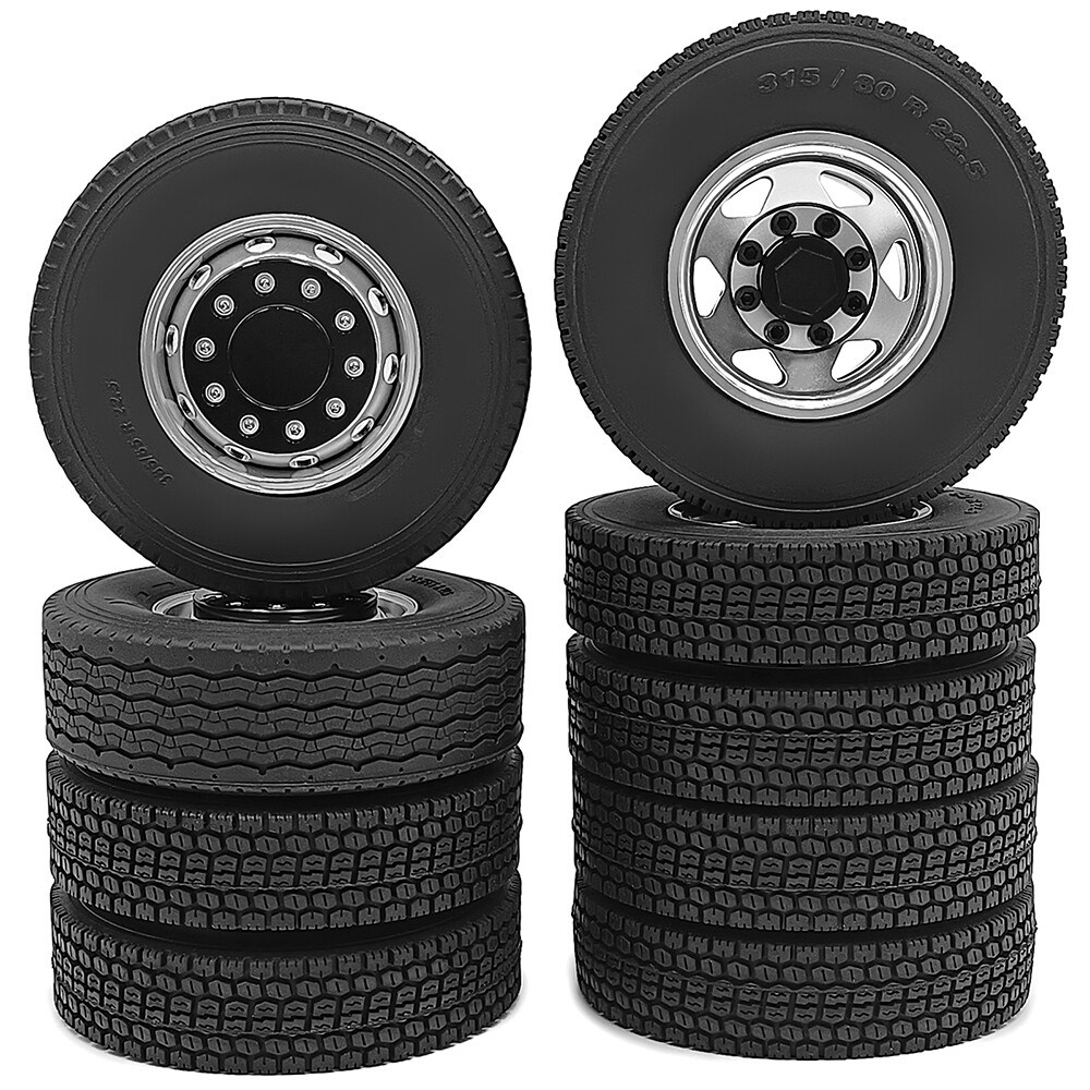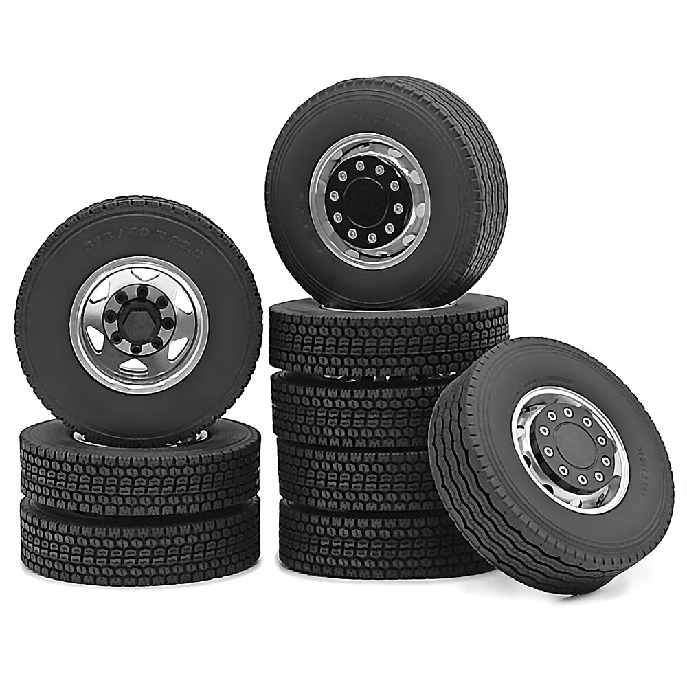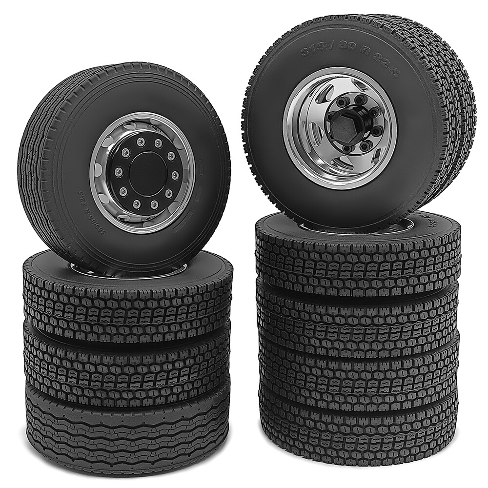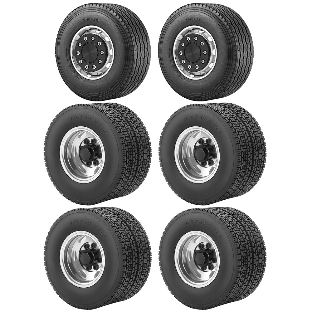 Aluminum Wheels Rims with Rubber Tires for Tamiya 6x6 RC Buggy Truck