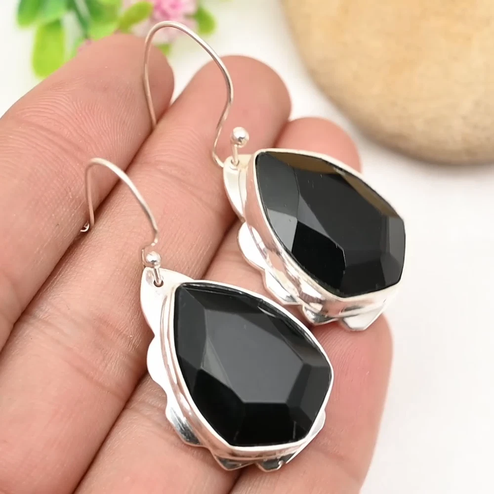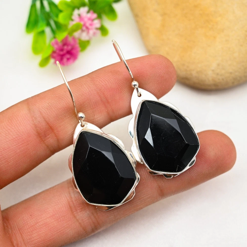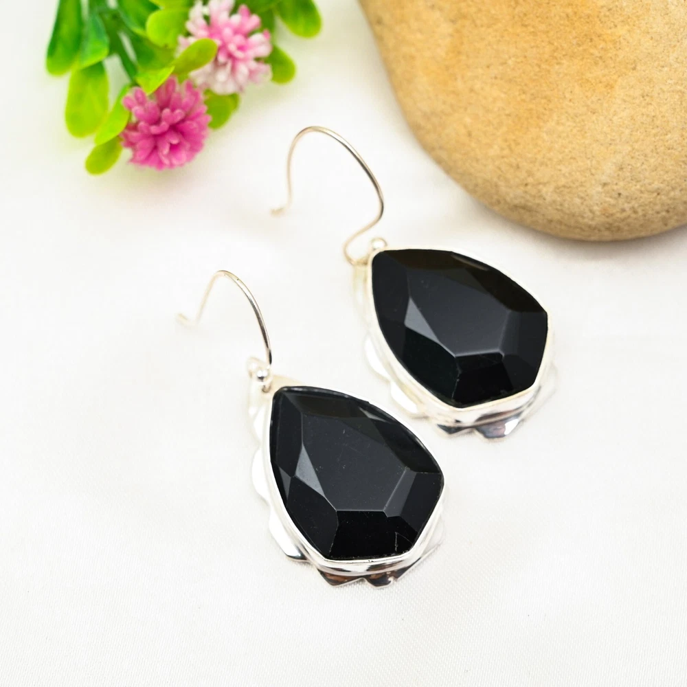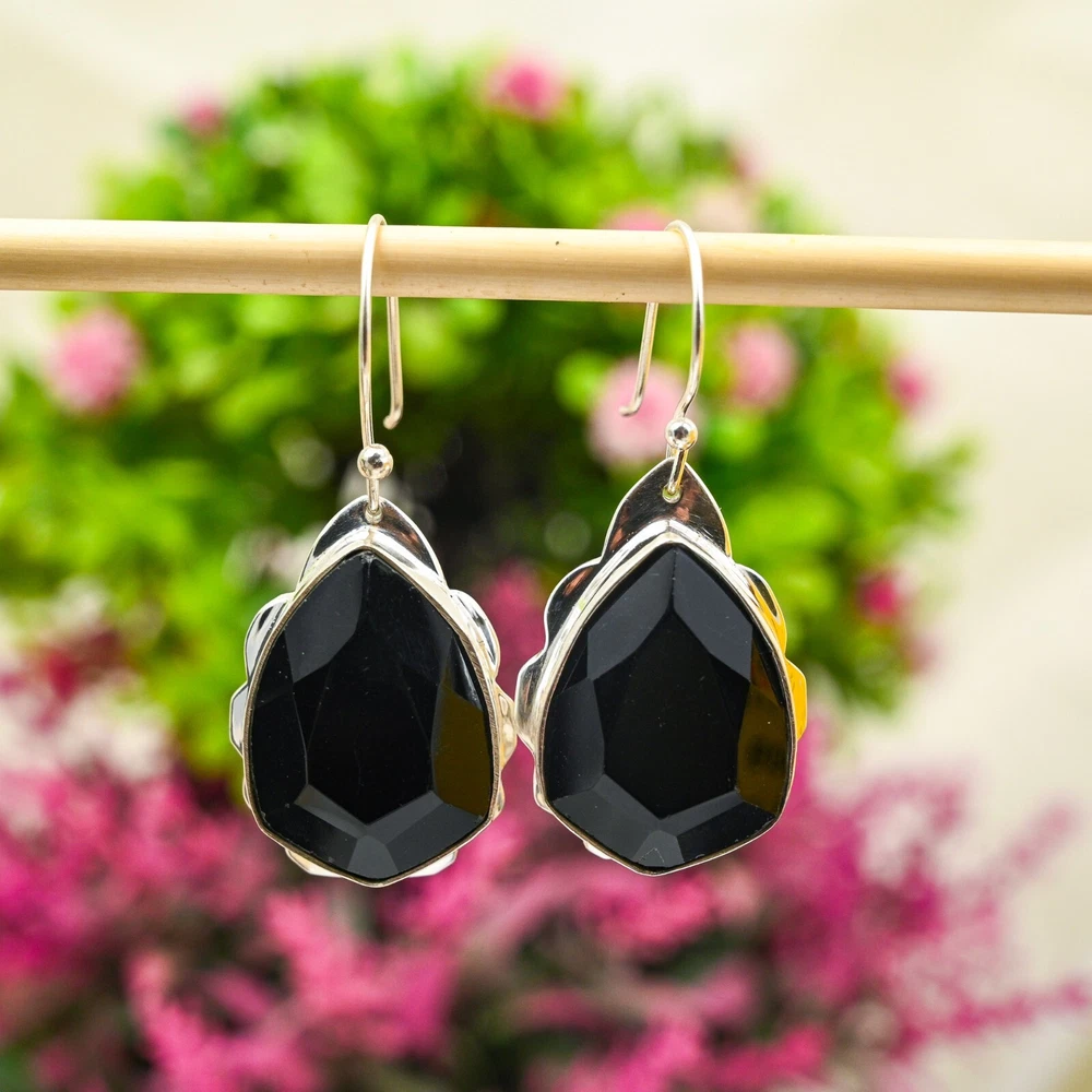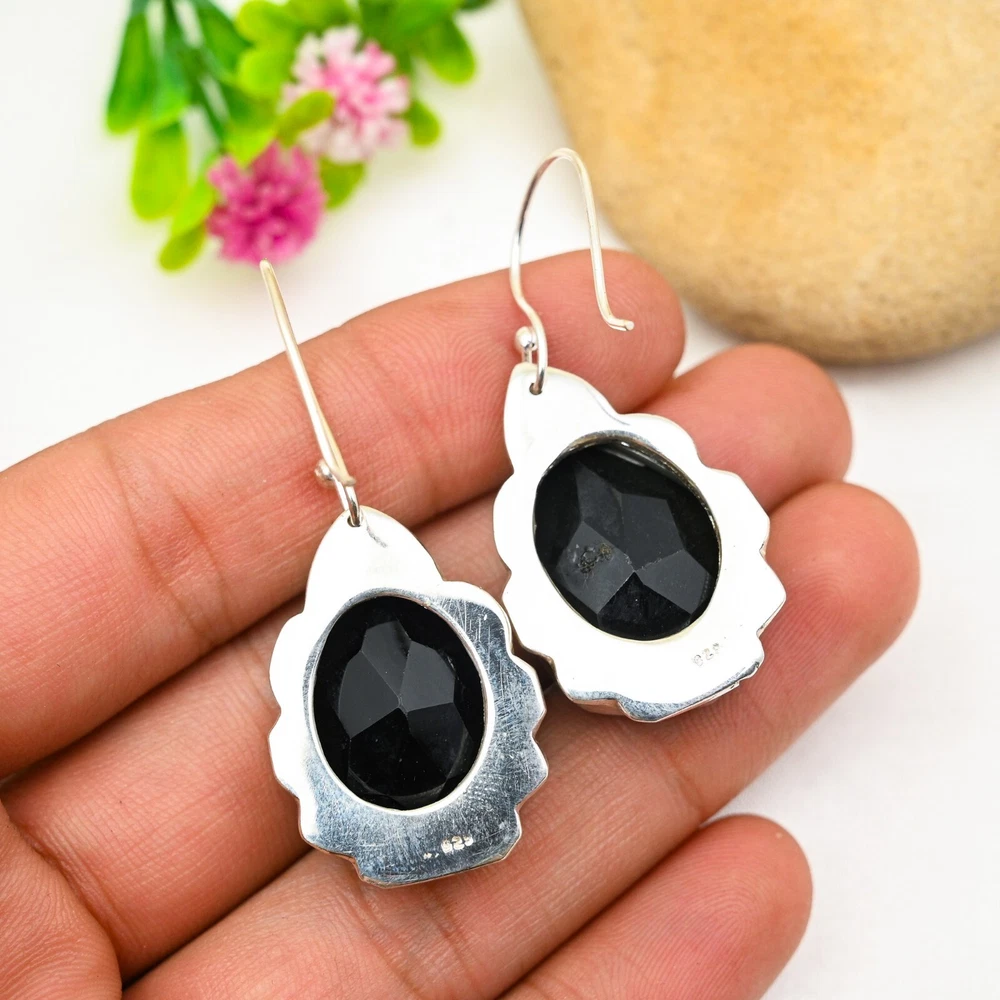 Amazing Black Onyx Earrings 925 Sterling Silver Gemstone Handmade Jewelry Gift