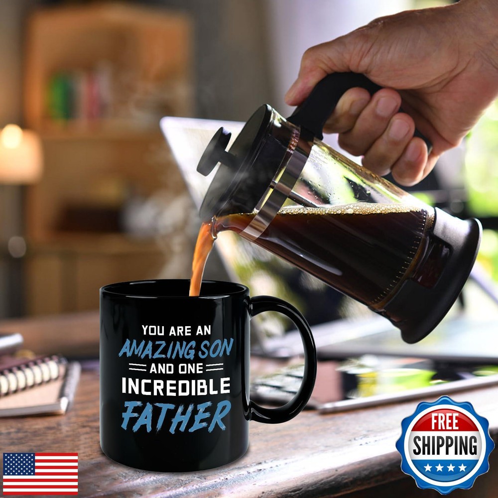 Slugeren Fathers Day Gift for Son, Amazing Son and Incredible Father Coffee Mug 11oz, Christmas Birthday 1st Father's Day Gift for Son, Father's Day Gifts from Mom, Dad, Parents Features đPERFECT GIFT FOR SON: The you are an amazing son and one incredible father coffee mug makes a heartfelt gift, reflecting a mother-in-law's and father-in-law's love and gratitude. Itâs a perfect choice for special occasions like Christmas, birthdays, or Fatherâs Day. đHIGH QUALITY: Built to last with top ceramic, this elegant father's day gift for son is as sturdy as it is stylish. A perfect blend of form and function, a lasting gift, itâs ideal for daily use, keeping drinks hot or cold while adding a touch of thoughtfulness. đDOUBLE SIDED PRINTING: Thoughtfully crafted with double-sided printing, this son gift mug keeps the endearing âAmazing Son And One Incredible Fatherâ text in view no matter how itâs held, making sure he feels cherished with every use. đFOR DAILY USE: Designed for everyday comfort, this gift for son son coffee mug features an easy-grip handle and an ideal size for daily coffee breaks. Plus, it's microwave and dishwasher safe for hassle-free use. âGENEROUS CAPACITY: With an 11-ounce capacity, this father's day gift mug is perfect for everyday drinks, whether he prefers coffee, tea, hot chocolate, or even a casual beer. A thoughtful gift heâll reach for every day Shipping Free & Fast Shipping: We offer free shipping to most of the USA with a normal delivery time of 3-7 days. However, due to the current situation, additional delivery time (up to 3 weeks) may be required for some items. Alternative Carriers: We may use alternative carriers (e.g., USPS, FedEx, UPS) to ensure your package arrives safely and on time. Due to the use of multiple carriers, we are unable to provide a tracking number automatically. Handling Time: Orders are processed and shipped within 1-2 business days of receiving cleared payment. Shipping Restrictions: Shipping to Alaska, Hawaii, Puerto Rico, Guam, and other US territories may incur shipping charges or delivery restrictions. Please contact us before ordering, or your order can be refunded/cancelled. State Restrictions: Certain items may not be shipped to California due to state regulations. Contact for Tracking Updates: If you require tracking updates or have any concerns about the delivery of your order, please feel free to contact us, and we will be happy to assist you. Return Policy 30-Day Hassle-Free Returns: If you are not completely satisfied with your purchase, you can return the item for free within 30 days of receiving it for a full refund or exchange. Easy Return Process: Contact us, and we will provide you with a prepaid return shipping label and detailed instructions. No Restocking Fee: There are no restocking fees for returns. However, the buyer is responsible for return shipping costs if the return is not due to a seller's error. Refund Processing: Refunds will be processed within 1 business day of receiving the returned item in its original condition. Payment We accept all major credit cards, PayPal, and Apple Pay for your convenience. Your payment information is secure and encrypted to ensure a safe and seamless transaction. Please complete your payment within 3 days of purchase to avoid any delays in shipping. Feedback Your feedback is extremely important to us. We strive to provide the best products and customer service possible. If you are satisfied with your purchase, please take a moment to leave us a positive review. If you have any concerns or issues with your order, please contact us before leaving negative feedback. We are committed to resolving any problems and ensuring your satisfaction. Contact Us If you have any questions or concerns, please feel free to reach out to our customer support team. You can contact us through the eBay messaging system. We are available Monday to Friday, 9:00 am to 5:00 pm EST, and we will do our best to respond to your inquiry within 24 hours. Thank you for supporting our small family business!