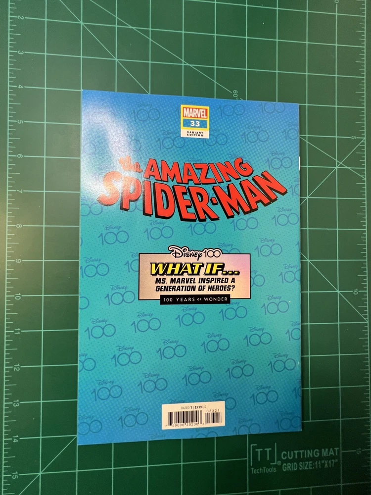 Amazing Spider-Man #33 Disney100 What If? Variant (2023) Summary: The Amazing Spider-Man #33 Disney100 What If? Variant (2023) features a stunning cover by Giada Perissonotto, created to celebrate Disney’s 100th anniversary. This special variant imagines a crossover between Marvel and Disney, reinterpreting the iconic moment from Amazing Spider-Man #33 , where Spider-Man heroically lifts massive debris. With Perissonotto’s signature Disney-inspired style, the cover blends the worlds of classic animation and superhero storytelling, making it a must-have for collectors and fans of both franchises. Condition and Description: This comic book is in Very Fine+ (VF+) condition? Nearly perfect with outstanding eye appeal. The colors remain vibrant, and the pages are tight with minimal wear, making it an excellent addition to any collection. Please review the provided pictures carefully to ensure it meets your expectations. If you have any questions or need further clarification, feel free to ask? I'm happy to help! Packaging and Handling: Your comic(s) will be packaged with the utmost care, just as I would for my own collection. I use sturdy materials, including cardboard protection , to ensure your comic arrives in the same condition it left my hands. If you encounter any issues upon arrival, please contact me immediately so I can resolve the matter promptly. Returns: Returns are accepted under the following conditions: The item must be returned in the same condition as received. Include all original packaging (boxes, bags, tags, UPCs). Ensure the comic(s) are shipped back with cardboard protection to prevent damage. Shipping: Default shipping is via USPS Ground Advantage . If you prefer Priority Mail , please request this option at checkout. Customer Satisfaction: I strive to provide an excellent buying experience . If there's anything more I can do to earn your business and positive feedback, please let me know?your satisfaction is my top priority !