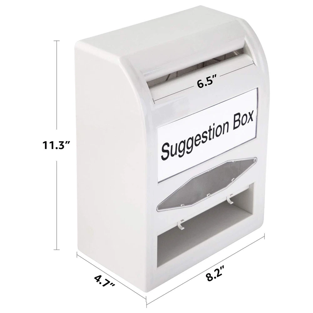 Product Description Amazon Basics ABS Ballot Box With Lock From the Manufacturer Amazon Basics Durable construction: made of rugged ABS plastic in a non-transparent white color Keyed entry: locked box requires a key to open; set of 2 keys are included Versatile: can be used for collecting voting ballots, letters, suggestions, complaints, and more Customizable: 6 replacement tags allow for creating unique signage; front window cover made of plastic protects the tags Warranty: backed by an Amazon Basics 1-year limited warranty