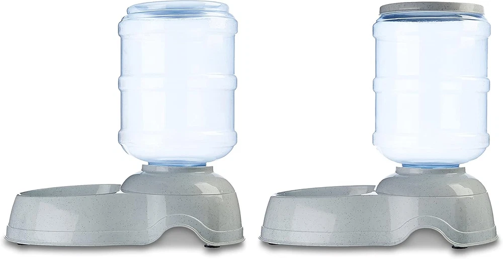 Amazon Basics Automatic Dog Cat Water Dispenser Gravity Feeder and Waterer Set Brand Amazon Basics Material Polypropylene, Rubber Target Species Dog Color Gray Product Dimensions 18.5 x 10.55 x 20.87 inches; 3.53 Pounds Item model number 11021/11022 Country of Origin China Item Weight 3.53 Pounds Product Dimensions 20.87"L x 18.5"W Manufacturer Amazon Global Trade Identification Number 00816831016000 UPC 816831016000 Brand Name Amazon Basics Features Large food dispenser and water dispenser set for dog or cat; uses gravity to ensure a consistent supply 12-pound dry-food capacity and 2.5-gallon water capacity; transparent hoppers allow for checking levels at a glance Anti-skid rubber feet on durable plastic base help ensure secure placement Side cut-out handles along the base for convenient lifting; easy to clean design; hand wash only Extra-wide entry for effortless filling Our Business 100% Customer Satisfaction We go above and beyond to ensure you receive the best level of service. Returns We want you to be happy with your purchase, however in the rare occasion that you are not, please let us know and we will contact you to arrange either a collection or a refund. Please CONTACT US before leaving any negative feedback and we will promptly sort out any issue with your order. 6223414