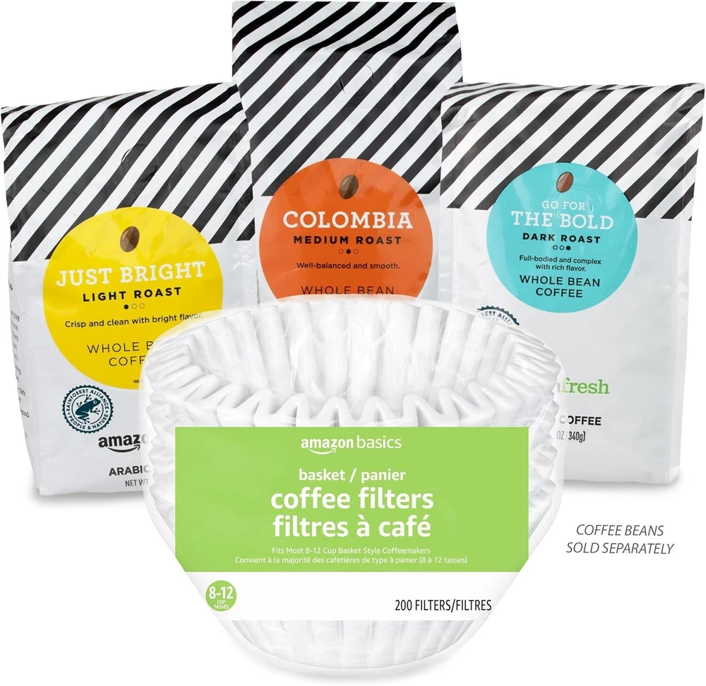 - 200 white basket coffee filters; fits most 8-12 cup basket coffee makers - Superior filtration that removes sediment and preserves coffee flavor - Made in the USA with imported and domestic components