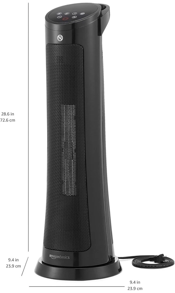 Introducing the Amazon Basics Digital Tower Heater, a sleek and stylish addition to any home. With a 24-hour timer control, this electric tower heater is perfect for maintaining a comfortable temperature in your living space. The heater is designed with a digital control style, making it easy to adjust the temperature settings. The tower heater is available in a striking black color and can be conveniently mounted on the floor. The heater's exterior is also black, making it a perfect match for any home décor. The Amazon Basics Digital Tower Heater is a must-have for anyone looking to add a touch of comfort to their home.