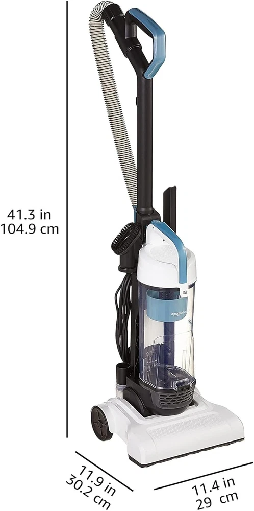 Amazon Basics Upright Bagless Vacuum Cleaner | Lightweight 8.4lb Carpet Hard Brand Amazon Basics Special Feature Bagless Filter Type Cloth Surface Recommendation Carpet,Hardwood Power Source Corded Electric Features EASY MANEUVERABILITY: At only 8.4 lbs and with an 25-ft power cord, this lightweight vacuum cleaner for home offers easy movement and convenient clean-up. VERSATILE CLEANING: These household vacuum cleaners include upholstery and crevice tools to clean various surfaces and tight spaces, as well as a detachable handle LARGE CAPACITY DUST CUP: These vacuum cleaners for carpets and floors have a 1.7L dust cup that allows for longer cleaning without frequent emptying, and features a quick-release button for easy disposal of collected debris WASHABLE FILTER: This upright vacuum cleaner includes a washable filter for long-lasting performance and easy maintenance Our Business 100% Customer Satisfaction We go above and beyond to ensure you receive the best level of service. Returns We want you to be happy with your purchase, however in the rare occasion that you are not, please let us know and we will contact you to arrange either a collection or a refund. Please CONTACT US before leaving any negative feedback and we will promptly sort out any issue with your order. 7796599