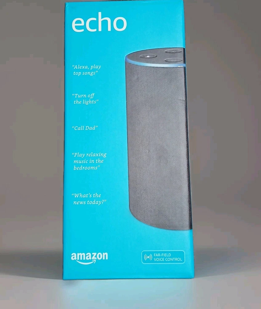 The Amazon Echo (2nd Generation) Smart Assistant in Charcoal Fabric is a Bluetooth-enabled smart speaker with Wi-Fi connectivity. It features music streaming, alarm clock function, internet radio, and voice control through Alexa. Compatible with Android and Amazon devices, it is ideal for smart home integration with Pandora and Spotify support. Made of fabric, this model was manufactured in 2017.