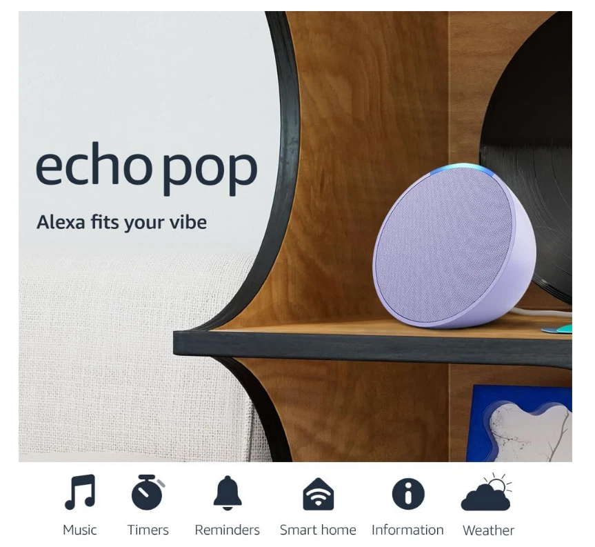 Color: Purple Type: Smart Speaker Compatible Model: Universal Model: Amazon Echo Pop gtin13: 0840080594804 Brand: Amazon Compatible Brand: Universal Manufacturer Color: Lavender Bloom MPN: B09ZXJDSL5 Smart Home Compatibility: Alexa Connectivity: Bluetooth, Wi-Fi Features: Voice Search UPC: 0840080594804