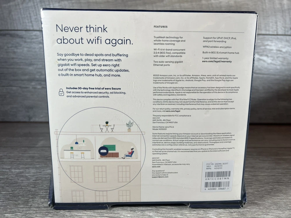 Amazon eero Pro 6 tri-band mesh Wi-Fi 6 router w/Smart Home Hub #K010111