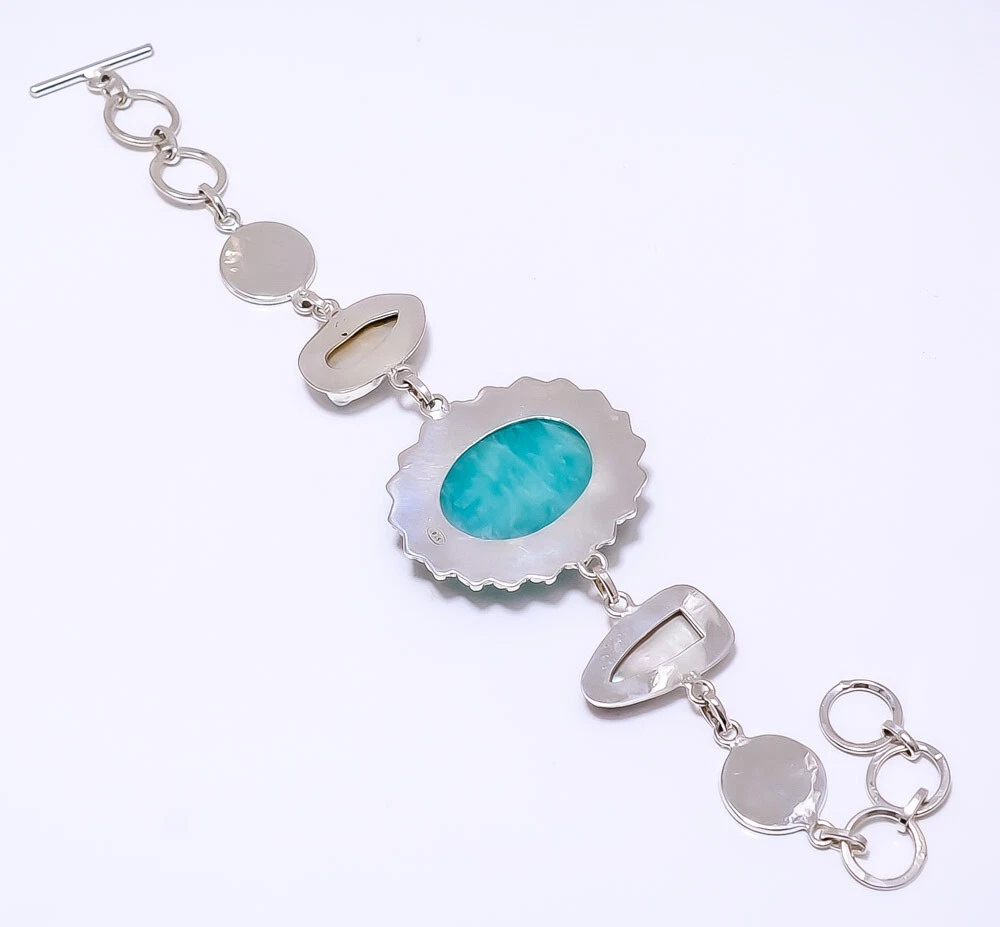 Charm Type Italian Modular Theme Beauty Main Stone Depth As Seen in Picture Main Stone Length As Seen in Picture Main Stone Width As Seen in Picture Seller Warranty Yes Shape Round Sizable No Wholesale Yes SKU B_9245_83_33 Signed Yes Unit Quantity 1 Unit Type Unit Type Bracelet Style Tennis Metal Sterling Silver Metal Purity 925 Parts Per 1000 Base Metal Sterling Silver Material Gemstone Main Stone Amazonite Main Stone Creation Natural Main Stone Color As Seen in Picture Main Stone Shape As Seen in Picture Main Stone Treatment Natural Item Length 7-8.99" Total Carat Weight 154 Features Adjustable Brand Unbranded Customized No Country of Origin United States Color As Seen in Picture Closure Toggle Chain Type Round Link Country/Region of Manufacture India Cut Grade Very Good Setting Style collet setting Number of Gemstones 3 Number of Diamonds As Seen in Picture Gemstone Clarity Grade Slightly Included Diamond Color Grade Not Applicable Diamond Clarity Grade Not Applicable Colored Diamond Intensity Not Applicable Certification Yes Occasion Christmas, Birthday, Anniversary, Engagement, Wedding, Valen Shipping & Handling - Charge - 1st item-5.90 And Additional item-1.90 Handling Time - 1 Days . Delivery Time - 2 TO 3 DAYS. Shipping Service - USPS First Class Package 2 -3 Days. Returns - 1.We offer a 100% Money Back Guarantee minus shipping for 30 days after receiving the Item / item's. 2..The item must not be altered or damaged in any way shape or form. 3.Upon receiving these items your payment will be refunded. 4.Email us for return instructions before sending merchandise back. 5.Please allow up to 1 business day for all returns to receive credit. 6.Sizing does not affect the return policy. Payment - We accept PayPal for Payment ,should made with in 14 days once buying or winning done , in case of late information expected .
