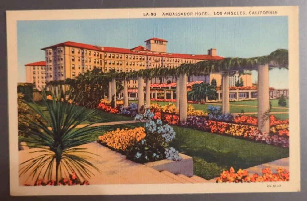 VTG Souvenir Linen Postcard Ambassador Hotel Los Angeles California c1940. There may be wear on the edges or a bent or torn corner, staining or writing on the card, creasing, or the card may have a cancellation mark. Most of the postcards I sell are 50 to 100+ years old and will never be perfect. Please examine the photos carefully for condition information. All postcards and greeting cards with a value of less than $20 are shipped via eBay Standard Envelope with a 2 mm postcard sleeve and a piece of cardstock on either side, taped closed with masking tape and placed in a heavy cardboard mailer. Postcards with a value of more than $20 are sent Ground Advantage in a 2 mm postcard sleeve, sandwiched between cardboard and shipped in a padded polybag. Tracking is provided with both methods.