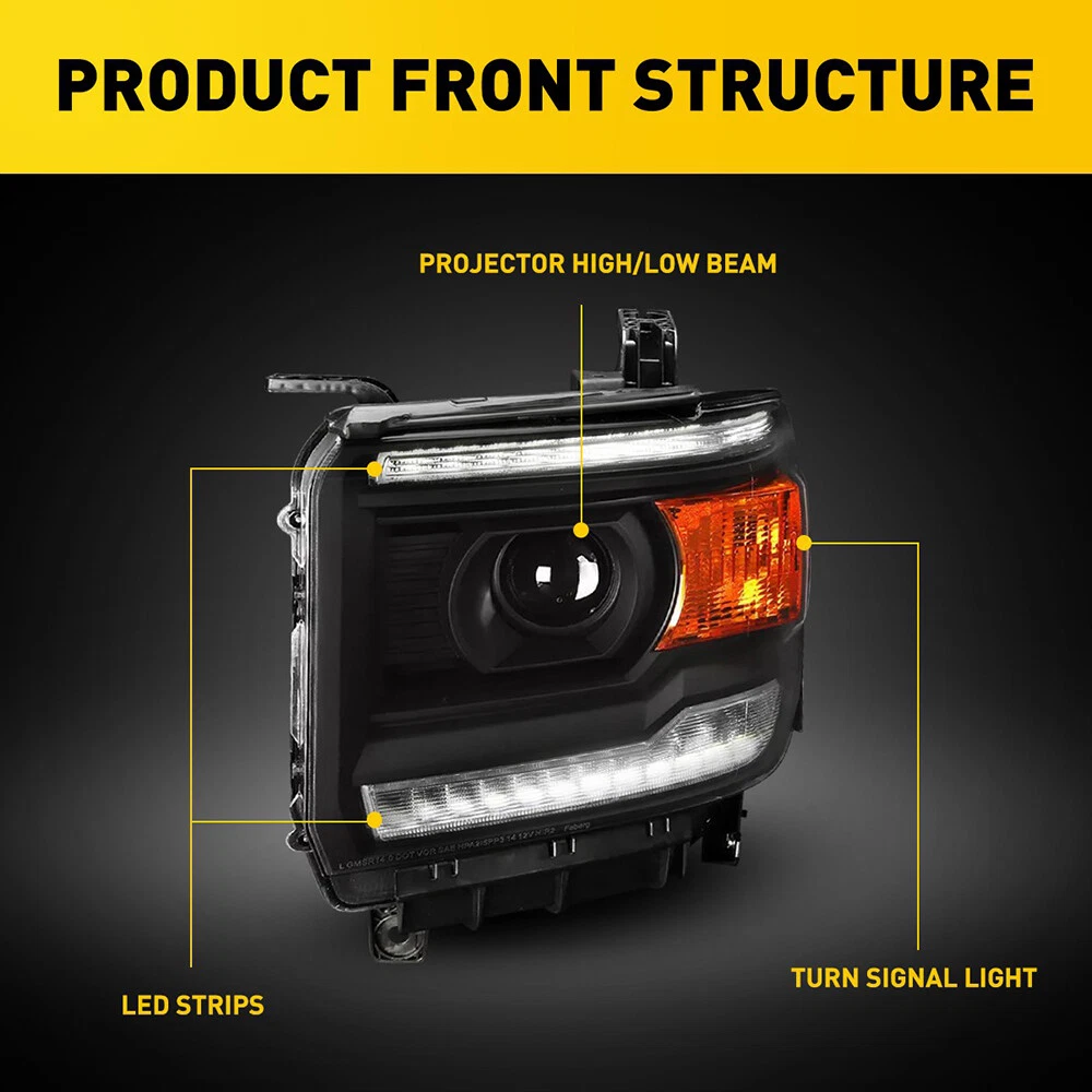 Fit for: 2014-2018 GMC Sierra 1500 Base / Denali / SLE / SLT models only 2015-2019 GMC Sierra 2500HD Base / Denali / SLE / SLT models only 2015-2019 GMC Sierra 3500HD Base / Denali / SLE / SLT models only (Compatible models with factory LED daytime running lights) (Does not compatible models with 2014 classic body style) (For models with factory non-LEDs lights headlights: This headlights will light up the bottom LEDs only by manually turn on the parkinglights; the top LEDs will not turn on) (Fits models with factory halogen headlights only; Does Not fit models with factory Xenon HID headlights) Specifications: OE number: GM2502390, GM2503390, GM2502394, GM2503394 Amber Headlight Corner W/ Projector DRL For 15-19 GMC Sierra 2500HD 3500HD EOOH Fit for: 2014-2018 GMC Sierra 1500 Base / Denali / SLE / SLT models only 2015-2019 GMC Sierra 2500HD Base / Denali / SLE / SLT models only 2015-2019 GMC Sierra 3500HD Base / Denali / SLE / SLT models only (Compatible models with factory LED daytime running lights) (Does not compatible models with 2014 classic body style) (For models with factory non-LEDs lights headlights: This headlights will light up the bottom LEDs only by manually turn on the parkinglights; the top LEDs will not turn on) (Fits models with factory halogen headlights only; Does Not fit models with factory Xenon HID headlights) Specifications: OE number: GM2502390, GM2503390, GM2502394, GM2503394 23130715, 23130716, 23130717, 23130718 Material: ABS+PC (ABS Plastic Housing/Polycarbonate lens) Appearance color: 1.Housing Color:Black 2.Lens Color:Clear 3.Reflector Color:Amber Note: Projector √ ???Include???/span> DRL √ (Not Include) Bulb × ( Not include) Features: *Easy to install: Direct replacement, drilling and cutting are not required. *Superior quality: Made of ABS and PC materials with toughness and heat resistance functions to ensure its long service life and durability. *Angle adjustment: Equipped with a headlamp Angle adjustment knob, you can adjust the best Angle of view through the knob. *Suggestion: 1.Please confirm the OE number before purchasing!!! 2.Professional installation is required!!! Packaging include: Headlights*2(Left+Right) Item Specifics Brand AUXITO Number of Bulbs No Bulbs Included Type Headlight Assembly Features w/ Projector, DRL, Direct Fit, Easy Installation Placement on Vehicle Front, Left, Right OE/OEM Part Number GM2502390, GM2503390, GM2502394, GM2503394 Manufacturer Warranty 2 Years Material ABS Plastic Housing & Polycarbonate Lens Tips Professional installation is required Housing Color Black Lens Color Clear Reflector Housing Color Amber Interchange Part Number GM2502390, GM2503390, GM2502394, 23130715, 23130716 Universal Fitment No Number of Pieces 2 Fitment Type Direct Replacement Fitment 1 For 2014-2018 GMC Sierra 1500 Base / Denali / SLE / SLT Fitment 2 For 2015-2019 GMC Sierra 2500HD Base / Denali / SLE / SLT Fitment 3 For 2015-2019 GMC Sierra 3500HD Base / Denali / SLE / SLT With Projector Yes With DRL Yes Payment We accept PayPal via eBay Secure Check-Out only. Immediate payment needs to be processed for items with Add to Cart option so that any promotional discounts can be applied to your order immediately. Shipping 1 .We do everything we can to ship your orders out as soon as possible. 2. Shipping and Handling: We process orders within two business day after the payment was clear. Returns Our 30-day Satisfaction Guarantee assures our customers that they will receive all orders promptly and exactly as described. In addition, it allows customers to return new and unused products in their original factory condition for any reason within 30 days from the date of purchase. 1. All returns must be pre-approved by AUXITO and have a return merchandise authorization(RMA) number. Unauthorized returns will not be accepted. 2. Buyers are responsible for appropriate packing, returning shipping cost, insurance and returning the item in "new" condition. Used items will not be accepted for return. 3. We will replace the returning item with an identical item, issue a full store credit or a full refund. Contact Us Our Working Time:(GMT+8)Monday to Friday,9:00-18:00. For inquires and customer support, please send your email via ebay email system. All emails will be responded to within 24 hours during business days. Feedbacks 1. We appreciate your business and strived to improve our customer service and our commitment to quality. 2. We will leave a positive feedback immediately after payment is received. We appreciate a positive feedback as much as you do. 3. If for some reason there is any issue with the purchase, please contact us prior to leaving feedback, and we will be glad to work with you to have it resolved. DESCRIPTION PAYMENT SHIPPING RETURN POLICY CONTACT US Hot Item Fit For 2015-2019 Hyundai Center Light Gray Sonata Armrest Console Lid Cover USD 12.34 190 PCS Bumper Fender Moulding Side Garnish Grille Retainer Clip ABS Various USD 10.44 4" Red Truck Long Performance High Flow Cold Air Intake Cone Dry Filter Cotton USD 26.59 Waterproof Motorcycle Handlebar Dual USB Phone Charger Cigarette Lighter Socket USD 13.99 146PCS For Toyota RAV4 Fender Door Hood Bumper Trim Clip Retainer Fastener Kit USD 10.92 Hot Item 190 PCS Bumper Fender Moulding Side Garnish Grille Retainer Clip ABS Various USD 10.44 Waterproof Motorcycle Handlebar Dual USB Phone Charger Cigarette Lighter Socket USD 13.99 146PCS For Toyota RAV4 Fender Door Hood Bumper Trim Clip Retainer Fastener Kit USD 10.92 4" Red Truck Long Performance High Flow Cold Air Intake Cone Dry Filter Cotton USD 26.59 Fit For 2015-2019 Hyundai Center Light Gray Sonata Armrest Console Lid Cover USD 12.34 Amber Headlight Corner W/ Projector DRL For 15-19 GMC Sierra 2500HD 3500HD EOOH Fit for: 2014-2018 GMC Sierra 1500 Base / Denali / SLE / SLT models only 2015-2019 GMC Sierra 2500HD Base / Denali / SLE / SLT models only 2015-2019 GMC Sierra 3500HD Base / Denali / SLE / SLT models only (Compatible models wi