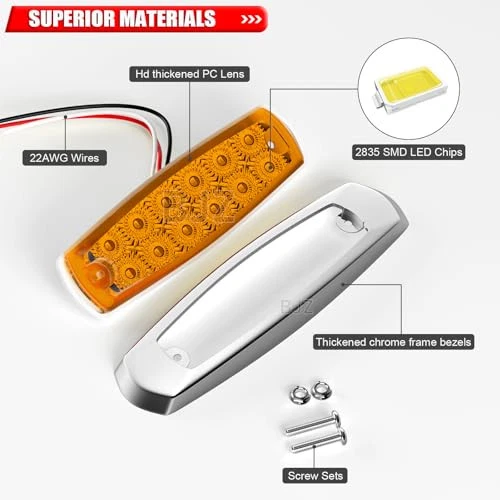 Country of Origin: China Wattage: 2.4 watts Special Feature: Surface mount, easy to install. IP67 waterproof and dustproof. Assembly Required: No Auto Part Position: Outside Item model number: Does Not Apply MPN: Does Not Apply Item Length: 6 Brand: Does Not Apply Manufacturer: Does Not Apply Year: 2024 Model: Does Not Apply Exterior: PC Lens + Chrome Bezels Item Width: 3 Lens Material: Polycarbonate Manufacturer Part Number: Does Not Apply Lens Color: Amber Specific Uses For Product: Fit for marker lights, side marker lights, trailer marker lights, Special Features: Surface mount, easy to install. IP67 waterproof and dustproof. EAN: Does Not Apply UPC: 797427499691 Vehicle Service Type: Fit for Truck, Trailer, Pickup, ATV, UTV, RV, SUV, Van, Offroad, Item Weight: 12.6 ounces Item Height: 2 Item dimensions L x W x H: 6 x 3 x 2 inches Product Dimensions: 6 x 3 x 2 inches Type: Does Not Apply Date First Available: May 23, 2024 gtin13: Does Not Apply Color: Amber