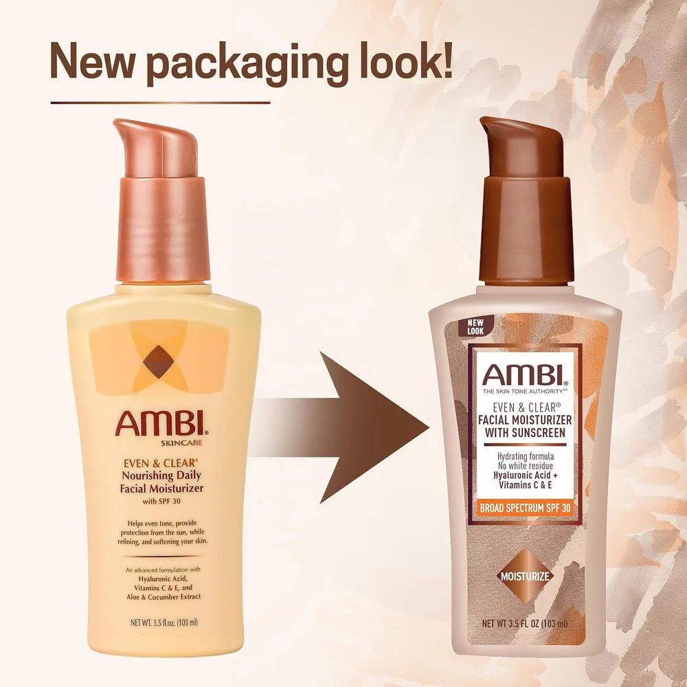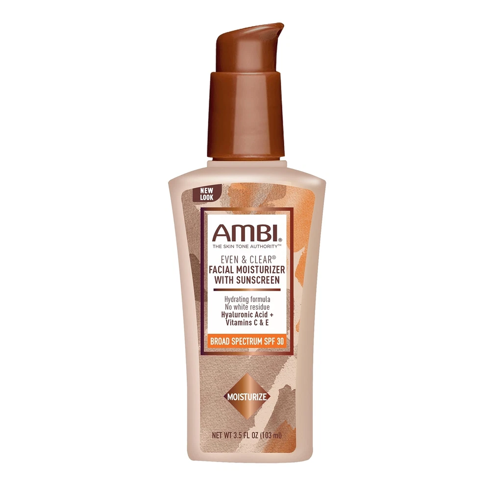 Ambi Even & Clear Daily Facial Moisturizer with SPF 30, 3.5 Ounce Daily Moisturizer with SPF 30: This moisturizer combines natural extracts, proteins, and vitamins to refine, soften and even skin tone; Organic SPF 30 formula, unlike mineral formulas, does not leave a white or ashy cast on melanin-rich skin Hydrating Formula: Featuring Hyaluronic Acid paired with Aloe and Cucumber Extracts to provide triple the moisture without clogging pores, plus antioxidant-rich Vitamins C and E to rejuvenate and add glow The Ambi Regimen: We make dermatologist-recommended products to cleanse, moisturize and nourish, help fade dark spots and discoloration, treat acne, dry skin and eczema, and other solutions for melanin-rich skin Your Skincare Journey: For smooth, even-toned, flawless looking skin try our cleansers, bar soaps, serums, moisturizers and fade creams specifically formulated for and by those with diverse skin tones The Skin Tone Authority: For 50 years, Ambi has been rooted in catering to the skincare needs of women of color, blending science and nature to create affordable, high-quality skincare products Ambi Even & Clear Nourishing Daily Facial Moisturizer combines natural extracts, proteins, and vitamins to refine, soften and help even skin tone. It is specifically formulated with Hyaluronic Acid paired with Aloe and Cucumber Extracts, which provide triple the moisture without clogging pores and antioxidant-rich Vitamins C & E, which rejuvenate and add glow to the skin. Our organic SPF 30 formula, unlike the mineral formulas; it does not leave white / ashy cast on melanin-rich skin. It statistically performs better on consumer skin protection longevity tests. Paraben-free, Phthalate-free and fragrance-free. Shipping We offer FREE shipping on all orders! We ship within Three business days of payment, usually sooner. We use a selection of shipping services such as UPS, FedEx, USPS etc. We only ship to the lower 48 states, no APO/FPO addresses or PO Boxes allowed. Local pickups and combined shipping options are not provided at this time. Return You can return a product for up to 30 days from the date you purchased it. Any product you return must be in the same condition you received it and in the original packaging. Please keep the receipt. Payment We accept payment by any of the following methods: PayPal Please pay as soon as possible after winning an auction, as that will allow us to post your item to you sooner! Feedback Customer satisfaction is very important to us. If you have any problem with your order, please contact us and we will do our best to make you satisfied. Contact Us If you have any queries, please contact us via ebay. We usually respond within 24 hours on weekdays. Please visit our eBay store to check out other items for sale! Thank you for shopping at our store.