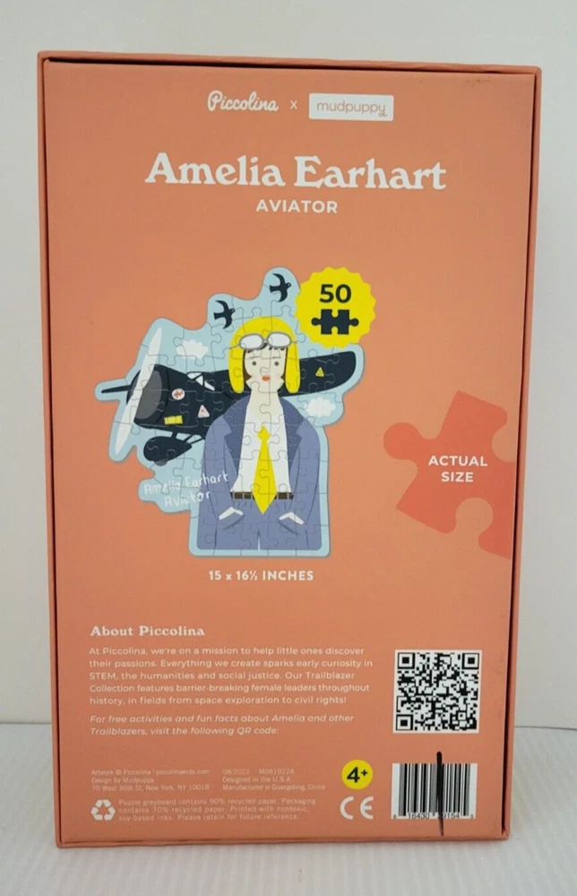 Amelia Earhart Aviator 50 Piece Jigsaw Puzzle NEW Large Pieces Piccolina × Mudpuppy New/Sealed Each item is carefully packaged to prevent any damage and is shipped immediately with tracking.