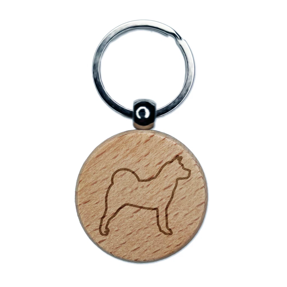 American Akita Dog Outline Engraved Wood Round Keychain Tag Charm
