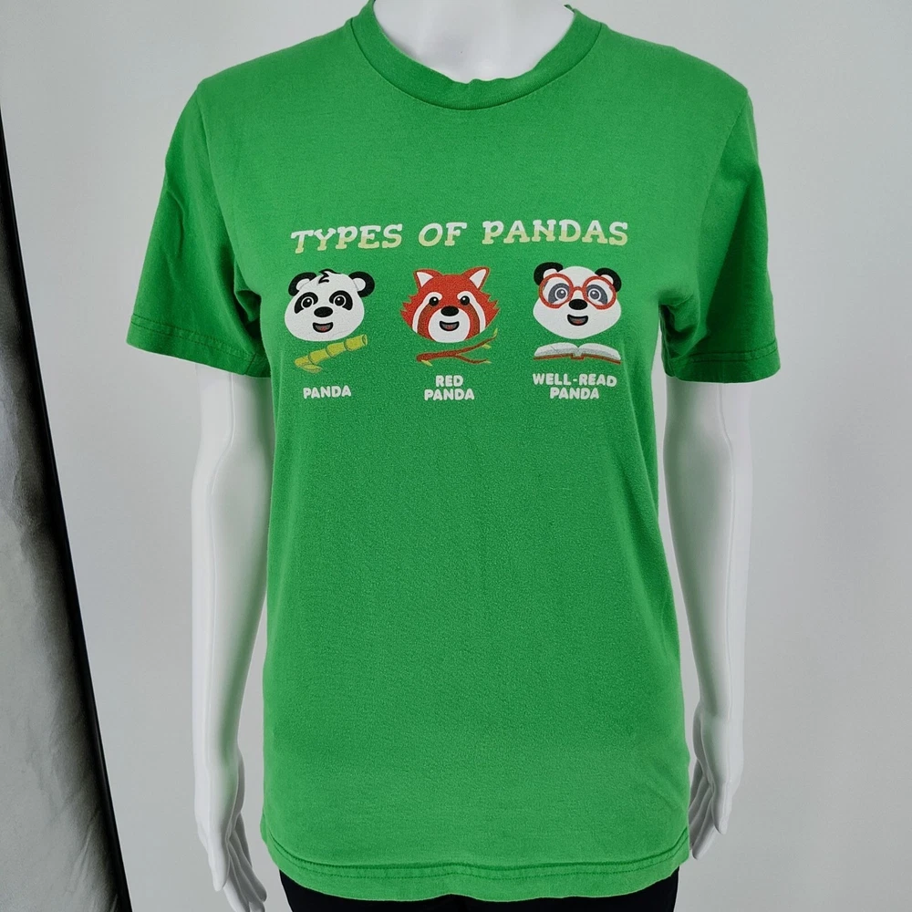 Condition Notes: Good overall condition. Slight fading and light wear throughout. See photos. Product Notes: • Originally purchased on Woot.Shirt • Original Design name: Important Panda Information by geekfactor12 • Women's Size Small • Crewneck Style • Short Sleeves • 100% Cotton • Green Color • Made In The USA Measurements: Pit to Pit: 16.25 inches Chest: 32.5 inches Hem to Collar: 24 inches Please check photos and measurements carefully