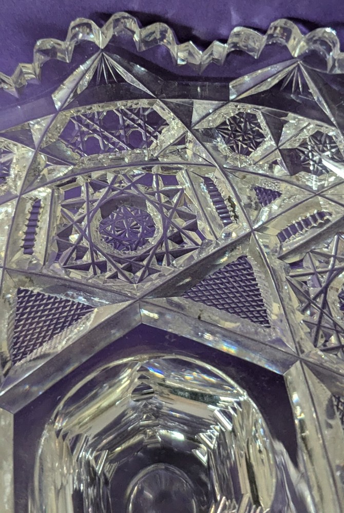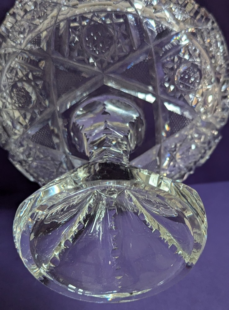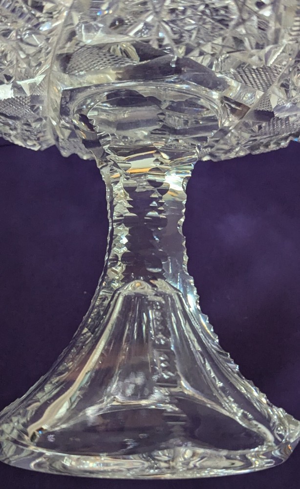 American Brilliant Cut Crystal Compote Pedestal Bowl EUC 6" Tall 7" Dia No chips or cracks noted. Some tiny flea bites in the design. Great American Brilliant Cut crystal.