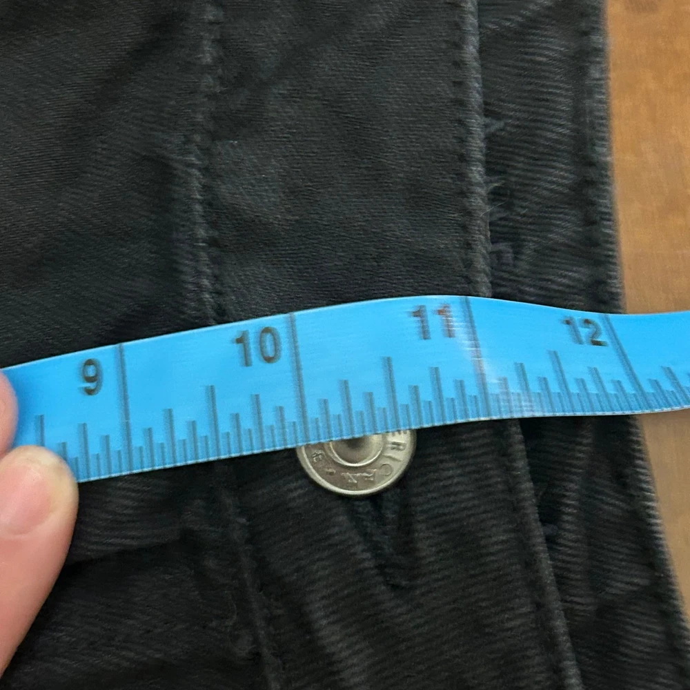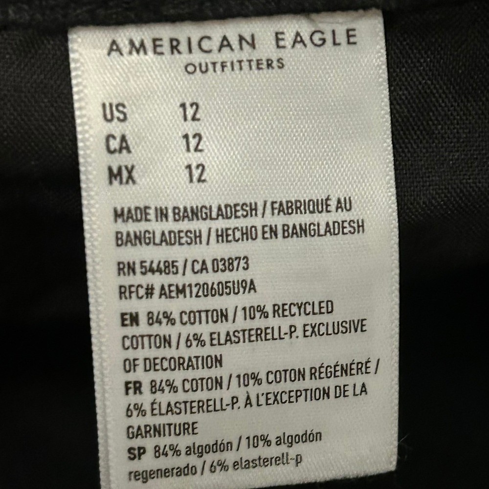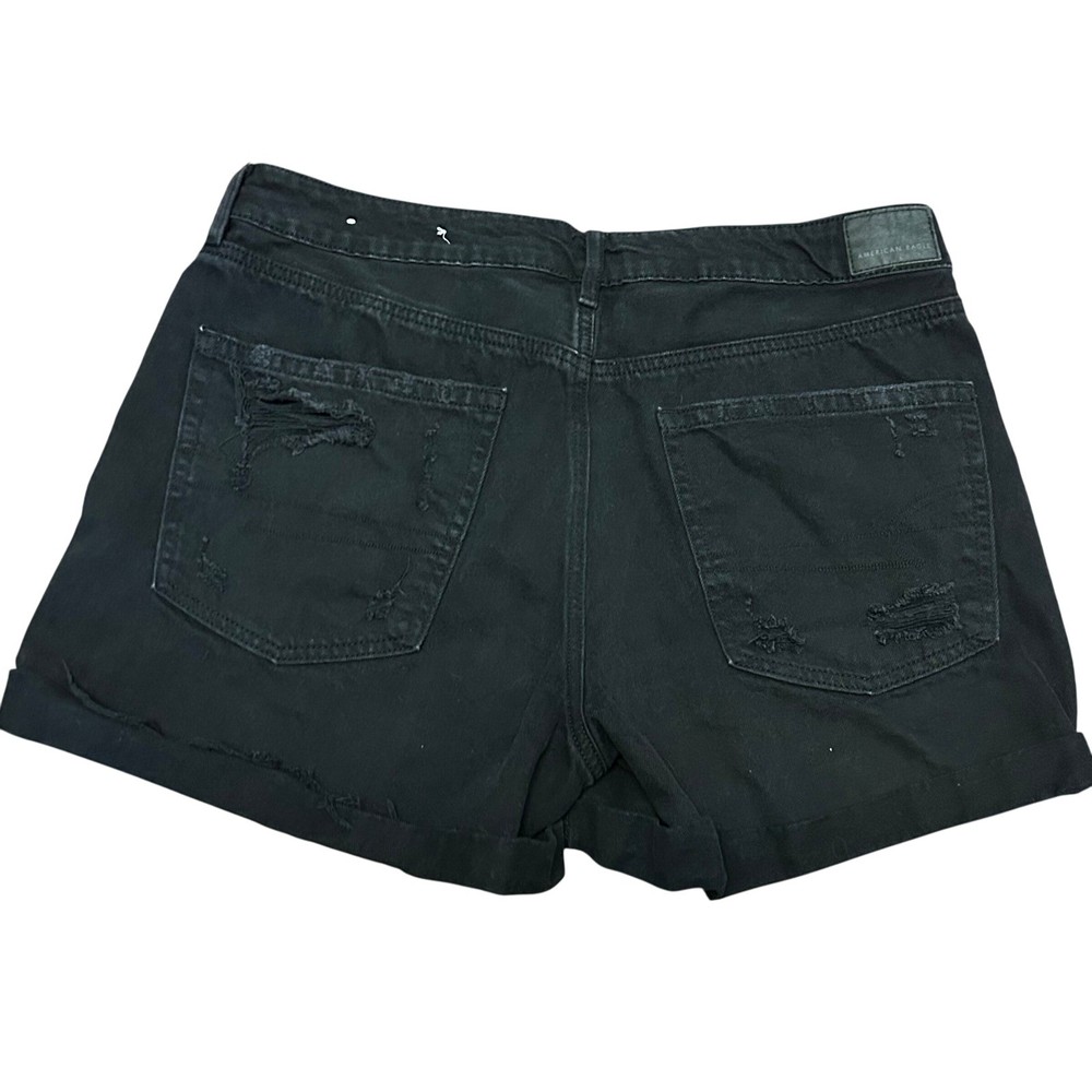 Embrace edgy comfort with these cool black denim shorts. A classic mom fit features a flattering high waist and cuffed hem, creating a casual yet stylish silhouette. Strategic distressing adds a touch of rebelliousness and lived-in charm. These shorts are incredibly versatile for weekend errands, casual hangouts with friends, or even dressed up for a summer night out. Measurements: • Waist: 18 inches • Inseam: 3 inches * Rise: 11 inches Style: Mom Color: Black Department: Women Fabric Type: Denim Material: Cotton Blend, 100% Cotton Occasion: Casual, Party/Cocktail, Travel Country/Region of Manufacture: Bangladesh Character: Rebel, Edgy Girl, Trendy Teen, Summer Fun, Casual Cutie Pattern: Solid Rise: High (Greater than 10.5 in) Keywords: American Eagle, Denim Shorts, Mom Shorts, Black Shorts, Distressed, Cuffed Hem, Womens Shorts, Size 12, High Waisted, Casual Shorts, Summer Shorts, Festival Style, Comfortable Shorts, Trendy Shorts
