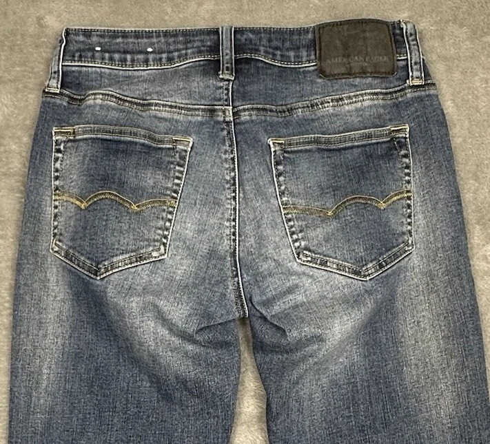 American Eagle Jeans Mens 28x30 (Fit 28x29) Blue Denim Extreme Flex Skinny Some seam and hem wear but otherwise in good pre-owned condition and laundered. Please see measurements in photos. I ship next business day, but sometimes same business day and Saturday if order is paid for early enough. Please let me know if you have any questions. I am open to offers!! Feel free to look at other items in my store! Thanks!