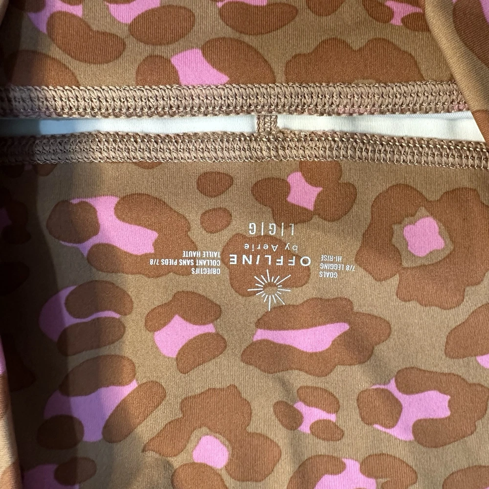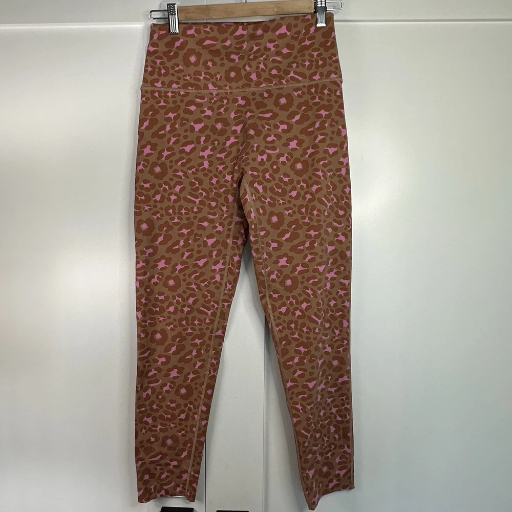 Stylish leopard print leggings from American Eagle, with a pink and tan pattern. High waisted, full length. Material 72% Nylon, 28% Elastane Excellent used condition. No holes or stains. Non-smoking home. Athletic, sporty, retrosport, gym, workout, technical, performance, gorpcore, activewear, utility, practical, cargo, organic, natural, granola girl, hiking, camping, outdoor, running, jogging, walking, cycling, bicycling, peloton, weight lifting, basketball, track, field, practice, yoga, trail, pilates Athleisure, lounge, soft, relaxed, casual, around the house, jersey knit, comfy, comfortable, cozy, stretchy, stretch, plush, pajamas, PJs, sleepwear, funky, art to wear, artsy, colorful, wacky, bold, patterned, embellished, unique, avant garde, maximalist, eclectic, dopamine dressing, kitschy, art teacher, creative, unconventional, artisanal, artisan, quirky, zebra, cheetah