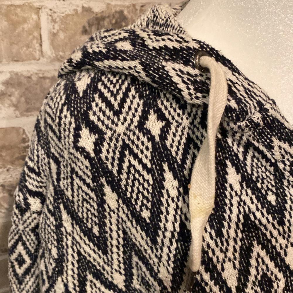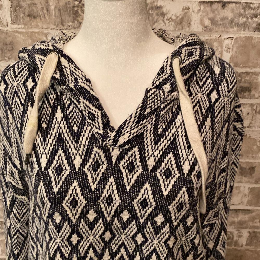 Measurements laying flat: PTP: 21”, Length: 25”, Arm inseam: 18.5”. Great condition! Embrace casual style with the American Eagle Outfitters oversized hoodie in a chic blue and white pattern. Designed for comfort and versatility, this hoodie is perfect for those who appreciate a relaxed fit. With its soft fabric composition, it promises to keep you cozy whether you're lounging at home or out on the go. This hoodie features a pullover closure for ease of wear and is tailored to fit a regular size S. It's a fashionable addition to any wardrobe, incorporating a touch of playful colorfulness that's easy to pair with your favorite jeans or leggings. Enjoy the blend of style and comfort that this American Eagle Outfitters piece offers.