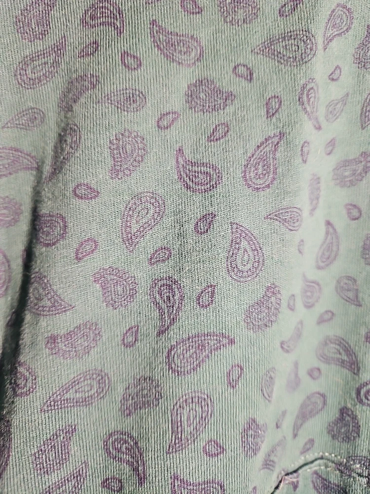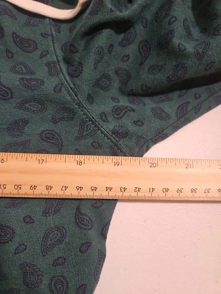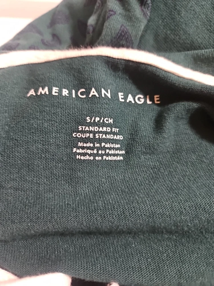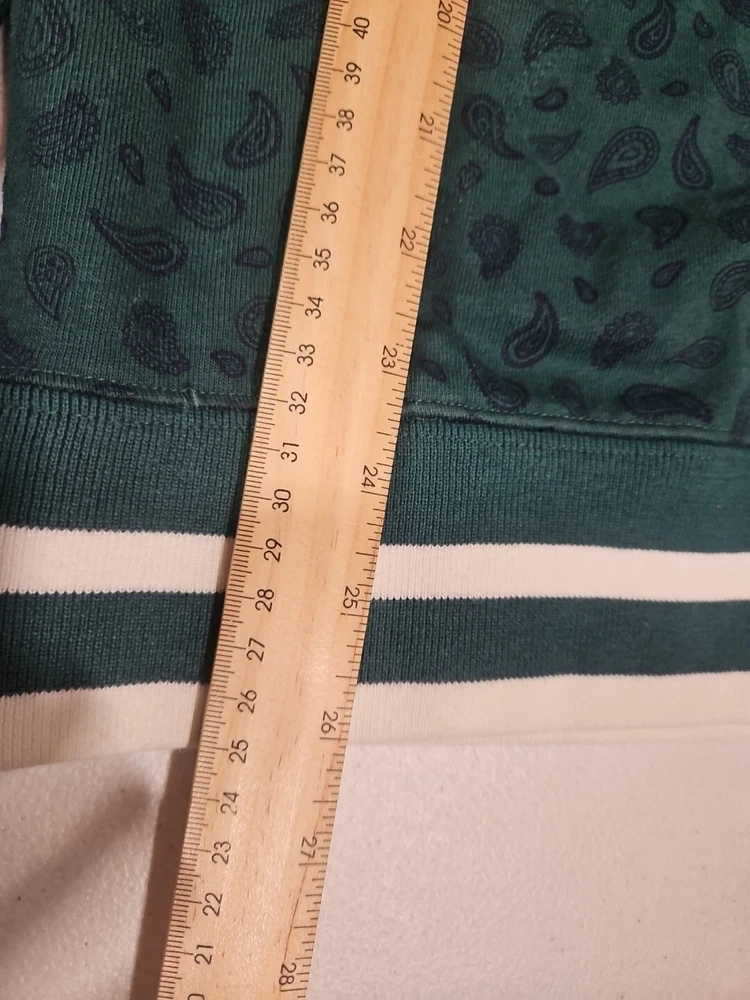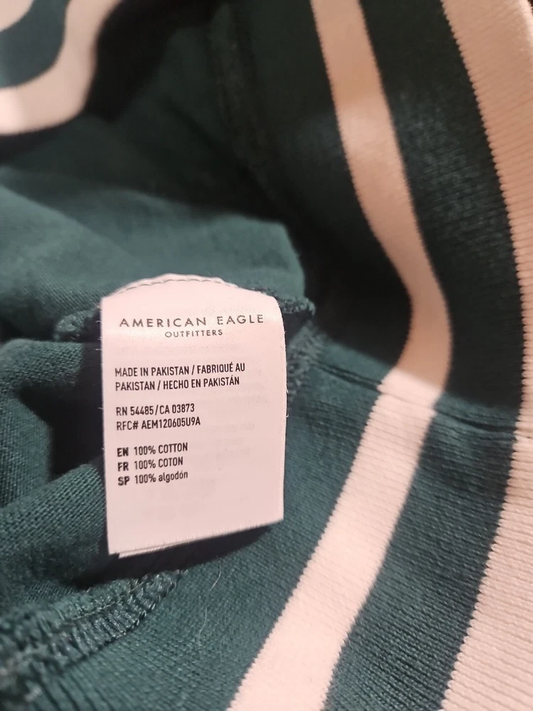 Crafted for comfort and style, this American Eagle women's hoodie in a petite size is a versatile addition to any wardrobe. The vibrant green hue is accented with a playful paisley pattern and white trim, offering a fresh and youthful look. The knit cotton fabric ensures breathability and ease of care, being machine washable for your convenience. The hoodie features a cozy hood, convenient pockets, and an elastic waist, making it ideal for a variety of activities from running errands to hitting the beach. Long sleeves and a regular fit provide a relaxed yet flattering silhouette, perfect for layering or wearing on its own during any season. Whether you're out for a walk or enjoying a casual day in the city, this pullover style hoodie is designed to keep you comfortable and on-trend. The hoodie is in great shape. You can see from the inside tags that it has never or hardly been worn. From a smoke and pet free home.