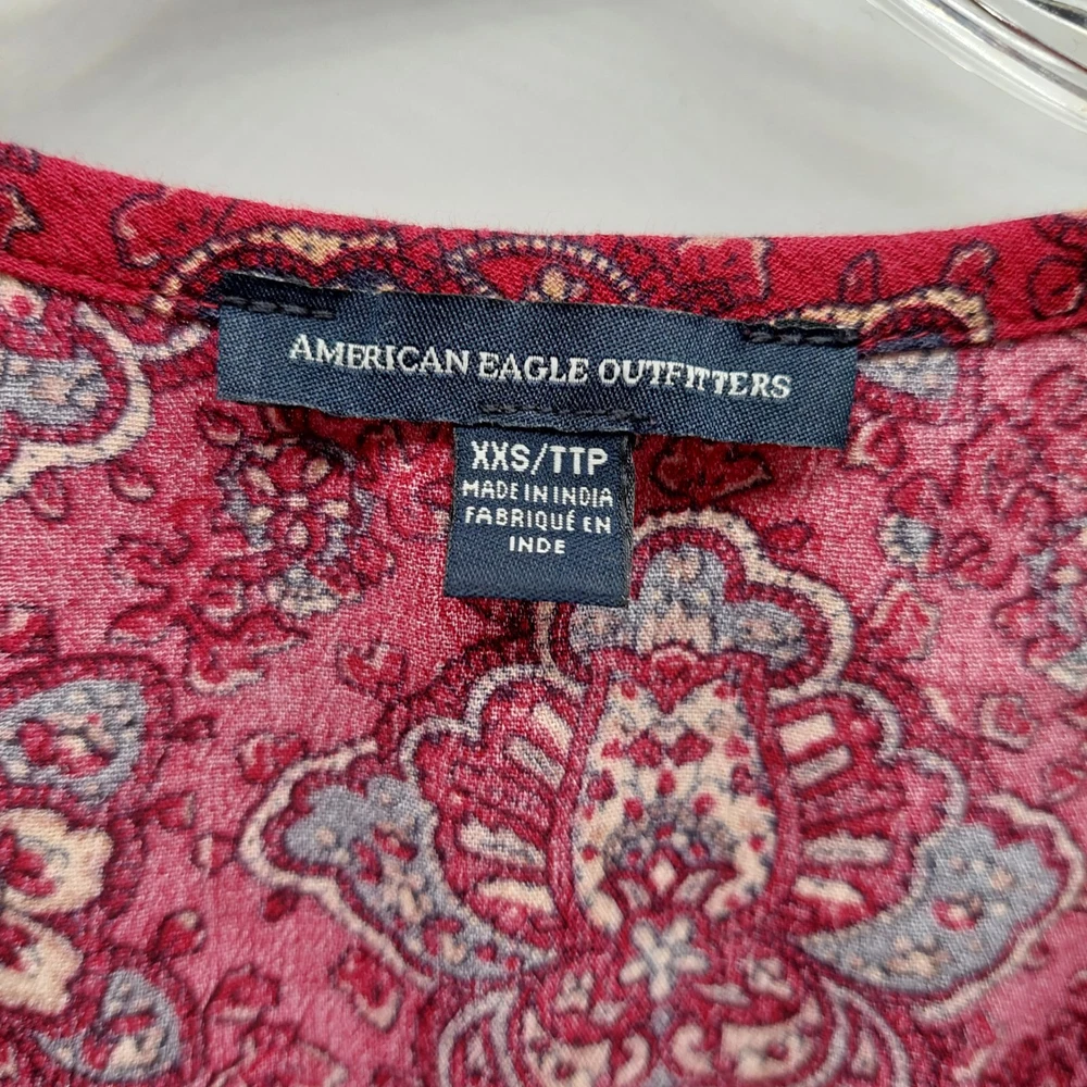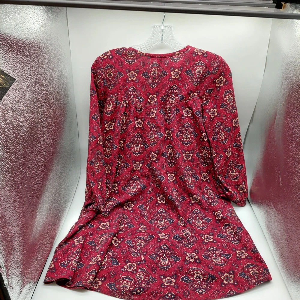 American Eagle Women's Size XXS Red Dress Flare Floral Printed Keyhole Tunic