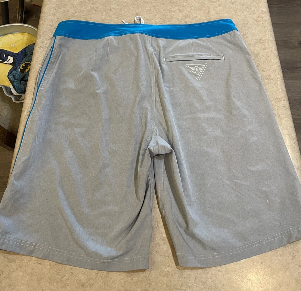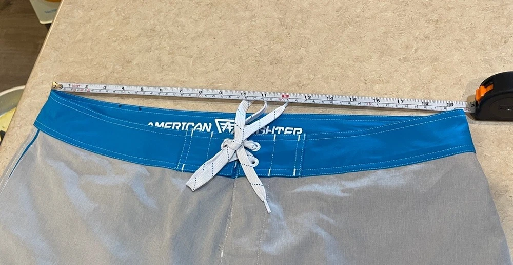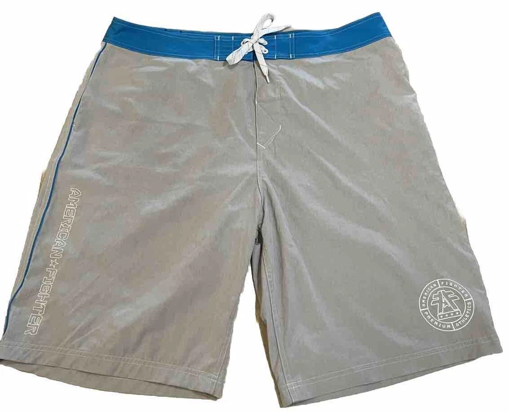 Experience the ultimate comfort and style with these American Fighter Board Shorts. Designed with a solid pattern in a sleek gray color, these board shorts are perfect for your next beach adventure. The material is a blend of polyester and spandex, making them breathable, stretchable, and machine washable. Featuring a tie closure and a back pocket, these board shorts are not just stylish but also functional. Suitable for surfing, these shorts are perfect for men who love to hit the beach in style. Get ready to make a fashion statement with these American Fighter Board Shorts. These shorts are in good preowned condition, please see ALL photos for a better idea on condition, any measurements, or details to the shorts.