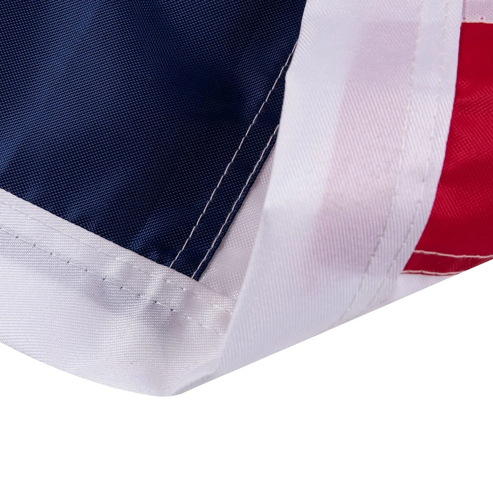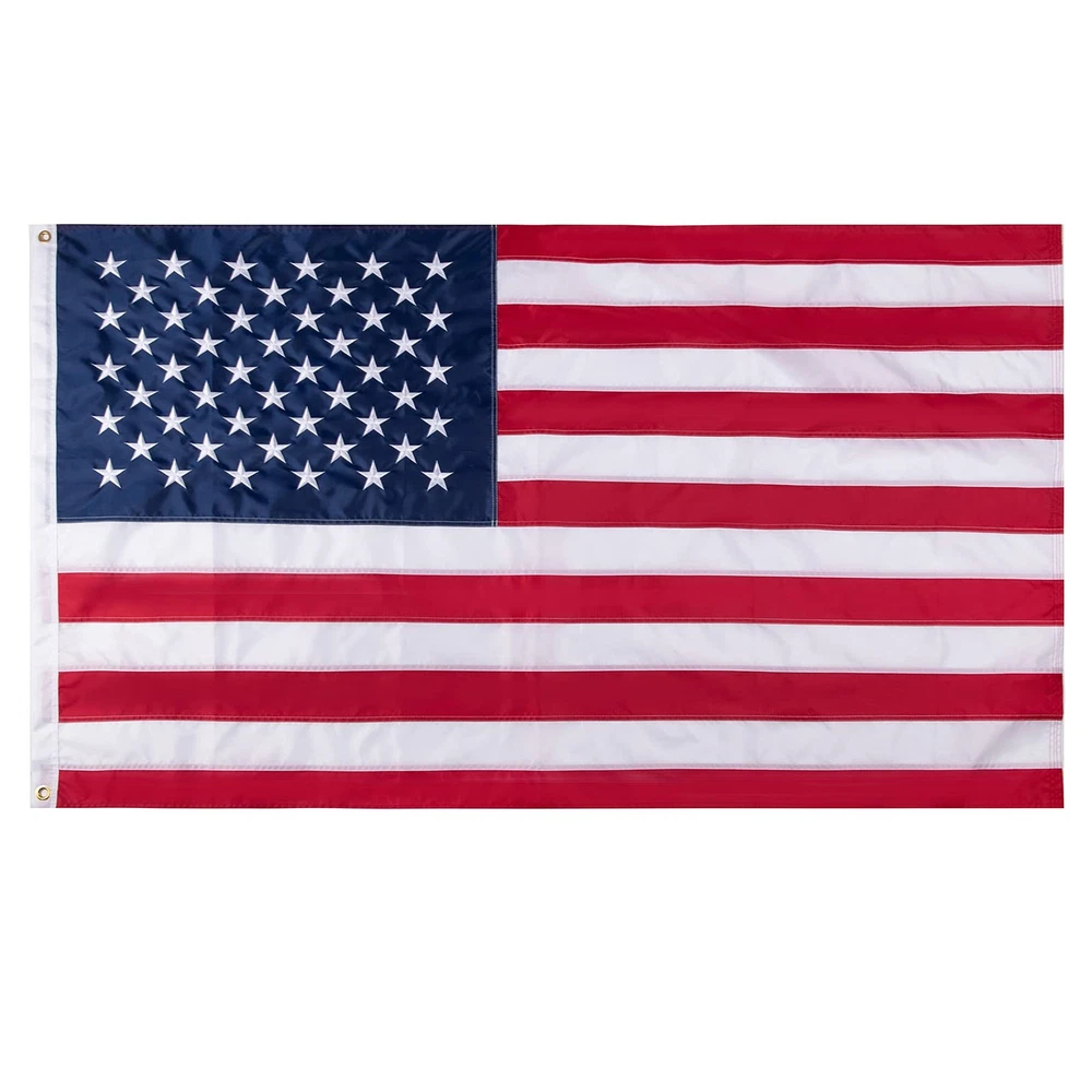 HighQuality materials: U.S Flag Made of heavyweight 420D nylon material. Adopt 50 embroidered stars, 13 stitched white and red stripes, heavy brass buttonhole and four-point needle flying hem, To prevent the flag from fraying and tearing.suitable for all harsh outdoor weather. Unique Advantages: Anti-fading dyes can be used for long-lasting bright colors. Double-layer cloth is used at the two corners of the flag to make it more durable. Size: 3 5. Foot. UNIQUE ADVANTAGES: In order to make the flag stronger, we use cloth flag with double layer angle on the two corners of the flag, so that the flag can fly in the air for a longer time. This is our advantage. QUALITY MATERIAL: This outdoor 3 x5 foot American flag is made of 420D nylon, which is thicker than ordinary 210D, and it is tear-resistant and helps to withstand harsh outdoor environments. The flag has been specially processed and can be dried quickly! PROFESSIONAL CRAFT: 50 embroidered stars, stripes stitched on the cloth, heavy brass buttonholes and four-point needle flying hem, and provide a high degree of UV protection to prevent fading. When you put the flag in your hand, you will feel the amazing workmanship of this American flag. SCENE USE: The Usa flag is perfect symbol to show your pride while celebrating holidays like New Year's Day,Lincoln's Birthday,President's day,National Day, Menorial Day,Independence Day,Labor Day,Navy Day,Election Days,Thanksgiving Day,Christmas Day,and every day display.Whether you are celebrating a beautiful day or an important occasion. PROUD MOOD: It is very suitable for indoor and outdoor use, it will proudly show your patriotism and pride. You can hang it from the flagpole or hang it on the wall. This is a good gift for your relatives and friends. SATISFACTION : If you have any questions, please . Assurance to give you a satisfactory solution. Care instructions: Hand Wash Only