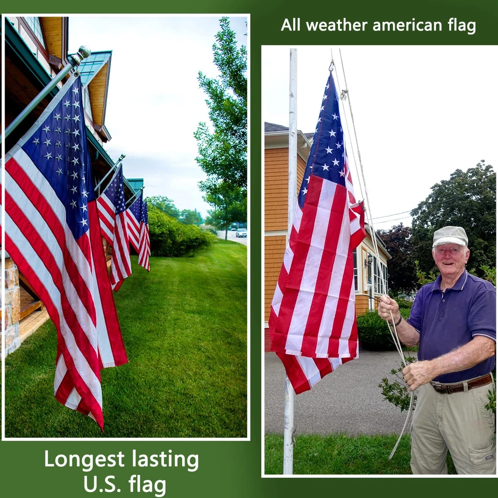 Kerothen 3x5 american flag, concentrated top, authentic, proud, sturdy, durable american flagl and so on quality. We have a fine independent stitching double-row sewing technology and a solid four-row stitched edge, with a thick canvas head and brass grommets, the most standard 50 embroidery stars and 13 stitched stripes american flag. Adopt new process technology for stitching US 3x5 flag We have adopted a new precision craft stitching,two rows of lock stitches and four rows of stitches on the flying hem are tighter and stronger, while 50 embroidery stars and 13 stitched American flags,represent this The history of our struggle for freedom and the eternal belief of veterans. New technology waterproof material We use a new technology waterproof material, suitable for outdoor american flag flying in rainy areas,ensure the bright colors of the American flag outdoor standard,Has a strong protection UV fading performance, to ensure the bright colors of the flag under the outdoor sun, the best standard 3x5 us flag outdoor. Sturdy durable toughtex durable is a requirement we must meet, you can use it with confidence,usa flags 3x5 outdoor. The sewn stars and each stripe are individually sewn together, and the sturdy brass grommet and thick, durable canvas head are tightly locked together ,Can be suitable for heavy rain weather, and ensure longer durability. Use in multiple occasions Kerothen USA 3×5 flag, you can use it in any occasion. When you travel, you can tie it to the car and take it in every place. It can also be used as a flag for outdoor farms, holiday gifts for loved ones, decoration on the wall of the room. At the same time, you can hang the flags on the window outside the house, the corridor and the flagpole in front of the door are all good flags. Quality Standard Outdoor American Flag:We have done a deep processing of the fabric, which has a tenacious performance. In different seasons the american flag will be bright and dazzling. When you hang sewn american flag on the flagpole, you will see it Elegant flight at a great distance. gives you a sense of pride that you can't express, choose our 3x5 american flag outdoor, provide the best American quality flag, let you have a patriotic faith, veterans Unbeaten feelings. Sturdy and Durable:Best weatherproof material to keep your 3×5 American flag in good condition in high temperature, humidity, blizzard, hail and strong wind, and you don't have to worry about its damage because it Equipped with two sturdy brass grommet that can be rust-proof and fastened to a durable canvas head, which will make your american flag more durable. let you become the American outdoor banner flying all year round. High Quality New Technology:Embroidered stars and sewing are my new precision craftsmanship. We have tight delicat embroidered stars and independent splice double stitch stitching,At the same time two rows of lock stitches and four rows of stitches on the flight hem were used for each edge to improve durability. stronger tear and tear resistance, avoids rapid wear and will ensure longer lasting use. For Many Occasions Use:US Flags 3x5 outdoor, you can use it in any occasion. When you travel, you can tie it to the car and take it in every place. It can also be used as a usa outdoor flag for farms, for the Loved ones and friends Activity flag gift, American flag as a decoration on the wall of the room, and you can hang the flags on the window outside the house, the corridor and the flagpole in front of the door.All are good usa flag shows. Satisfaction:We have the most complete service system, let you buy the 3×5 American flag correctly for the first time, and receive a strong sense of identity, and we provide the best quality products at the best price.