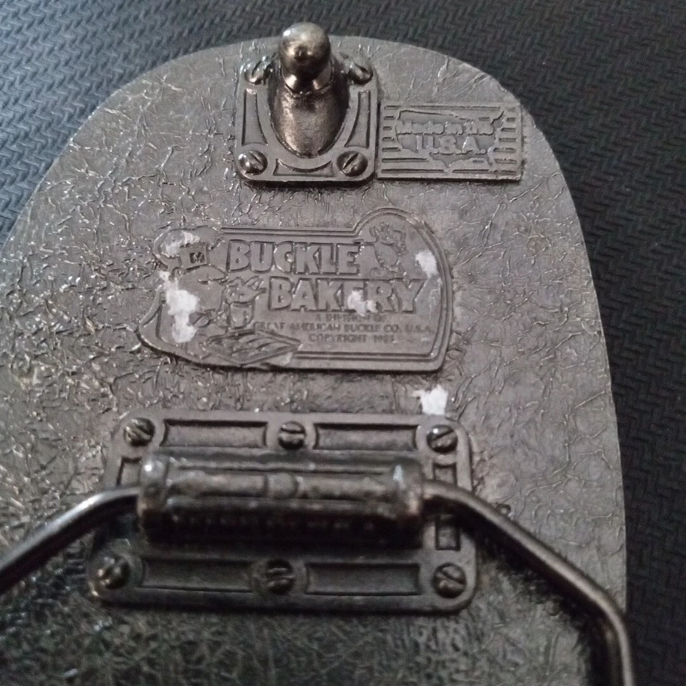 This Belt Buckle features a patriotic design with an American flag motif and an eagle in blue enamel. Produced by Buckle Bakery, it is a casual accessory suitable for men. The multicolor design lends itself to a cowboy & western theme, making it a stylish addition to any outfit. Crafted from metal, this belt buckle is a sturdy and durable piece that showcases American pride with its bold colors and imagery.