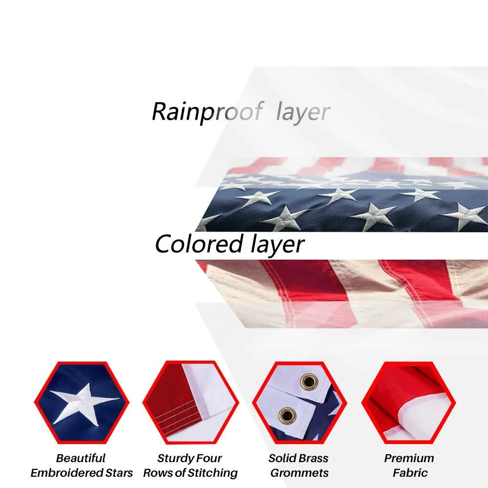 After the flagpole durability test, Anodized Outer Shell has 57% longer life than ordinary aluminum. So we increase the period by 50% Feature: - Commercial grade polyester of double layer in advanced sew skill for better quality - Fully dyed by aniline to color the fabric for more vivid, brighter and lasting longer result - UV fade resistant, rain resistant, wind resistant, withstand windy condition, flying 24/7 all day long - Dense embroidered white stars on a blue background, with fine sewn red and white stripes - Lock stitch on every seams, hems & fly ends for strong shape to fly against all weather - Size #2 grommets of solid brass & rolled rim, insert into duck cloth header to ensure heavy duty use - All flags are professionally made and with 90 days worry-free purchasing promise. - GZ622 choose the Top #1 MANUFACTURER to make flags, thus you have the VERY SELECTED QUALITY BUT CHEAPER PRICE. Package: 1x American Flag 3x5 FT 1x Silver Grey Pole 1x Flagpole Holder with Screws Flag The Day: President’s Day - 3rd Monday in Feb National Day of Prayer - 1st Thursday inMay Armed Forces Day - 3rd Saturday in May Memorial Day - Last Monday in May (Half-Staffuntil Noon) Navy Day – Oct 27th Veterans Day – Nov 11th Christmas Day – Dec 25th Thanksgiving Day – 4th Thursday in Nov Flag Day – June 14th Independence Day – July 4th Constitution Day – Sept 17th Labor Day – 1st Monday in Sept ✔Complete American Flag Pole Kit - This American flag pole kit contains everything you need, which includes a 3x5 feet polyester US flag, a no-tangle flagpole, and a white adjustable flag pole mounting bracket with screws. It will effectively save you time in finding the correct size of flagpole or holder for your American flag. Display the American flag pole kit proudly and show your patriotism! ✔Delicate American Flag - This 3x5 Ft USA flag is made of 100% polyester for long-lasting use. Imported. It features beautifully embroidered stars, heavy-duty brass grommets, and sturdy sewn stripes, as well as lock stitching in every seam, hem, and fly end with great wind resistance. The brass grommets are quite sturdy and are also easy to attach to the hooks of the flag pole. You will fully appreciate the outstanding craftsmanship and quality of this flag. ✔6FT 360° Spinning Flag Pole - Compared to other flag poles on the market, flag poles feature premium aluminum alloy for durability and a 360-degree rotating design. There are two sections for the flag pole, it is very easy to interlock them together. The free-rotating design will protect your flags from tangling or furling, which helps to display the best view of your flag. The plastic ring of the flag pole is adjustable to fit flags of different sizes. ✔ Multi-Position Flag Pole Bracket- Made of aluminum, our flagpole holder is thicker and more durable than other brackets on the market, which is stable and will not be easy to break. It is multi-position and it can be easily adjusted to any angle you like with the thumb screw. It is convenient to install the bracket on the wall with the screws included. ✔- This 3x5 FT American flag pole kit is ideal for residential or commercial use. We stand behind our products! All items sold by come with a 3-month . If there is any problem, kindly let us know it.