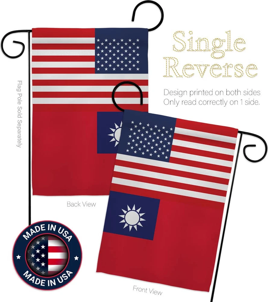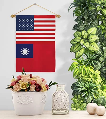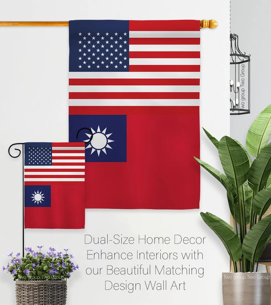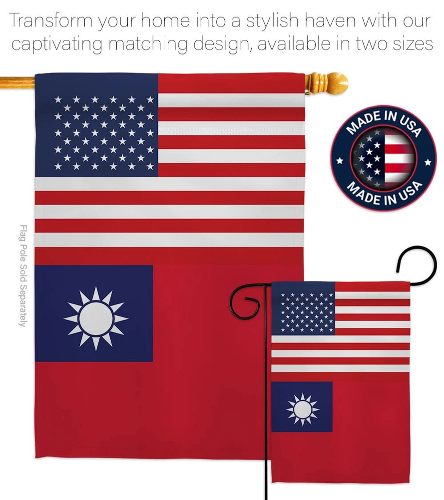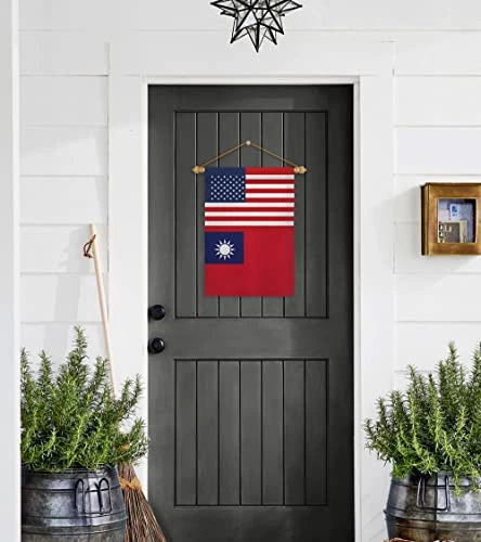 American Flag Taiwan Friendship Wood Dowel Set Wall Scroll Home Porch Sign Ta...