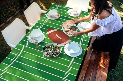 30 Days Return Policy Fast Delivery Trusted seller American Football Field Tablecloth Game Time Touchdown Sport Themed Party Decoration Kitchen Dining Room Home Rectangular Table Cover 60×104inch Product Description Material: Polyester fabric. Glossy feel, durable and reusable. Size Information: 60*104 inch(152*264cm). Fit oblong or rectangle table measures 36 inch x 60inch to 48inch x 72iInch, which can seat 6 to 8 people. Easy to clean: Both hand and machine washable. Iron on low heat. Occasion: Great for American football themed indoor outdoor birthday party table decoration, add good festive look to your party. And also can be used as a photo booth backdrop. Features: American football court pattern, add great atmosp to your party. Shipping Returns Payment Shipping Shipping is FREE to all addresses other than APO/PO boxes in the lower 48 states. All our stock ships from US-based warehouses. Shipped via USPS or UPS (depending on location and package weight) Unless stated otherwise, all orders will ship within 24-72 hours of your payment being processed. Check our feedback to see the great reviews of FAST shipping we offer. Returns As our valued customer, we will do our best to make sure the product you receive arrives to you on time and as expected. If you are not satisfied with your purchase, please contact us within 30 days of receiving your order to process a return. Payment We currently accept payment via eBay managed payments only. Once payment is cleared, we will dispatch your shipment within 1-3 business days. Please refer to the "Shipping" tab for more information regarding shipping speed to your destination.