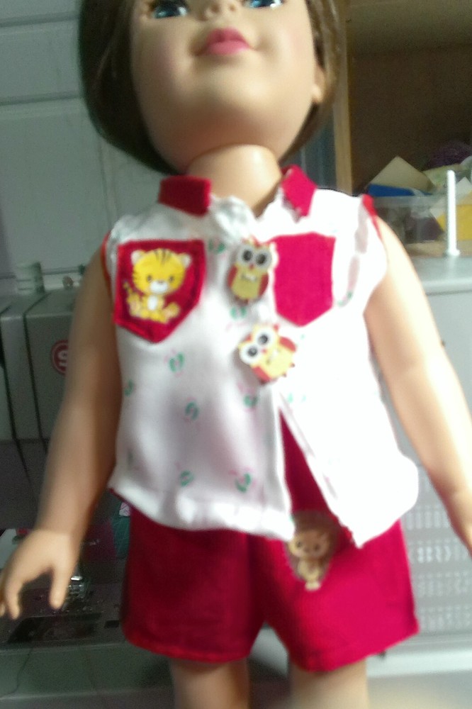fits 18" doll includes shirt, pants and a pair of shorts all to match made from cotton cloth washable and dryable not perfect but good