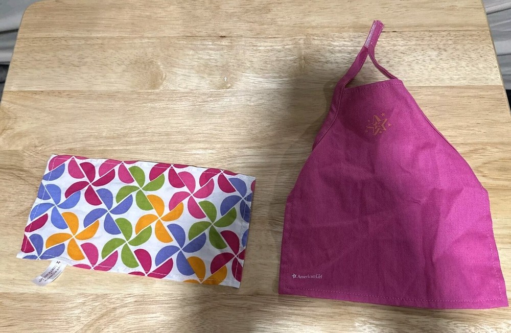 Add a touch of charm to your American Girl doll's wardrobe with this adorable apron and towel set. The set is made of high-quality cloth material and features a delightful design that will make your doll stand out from the rest.