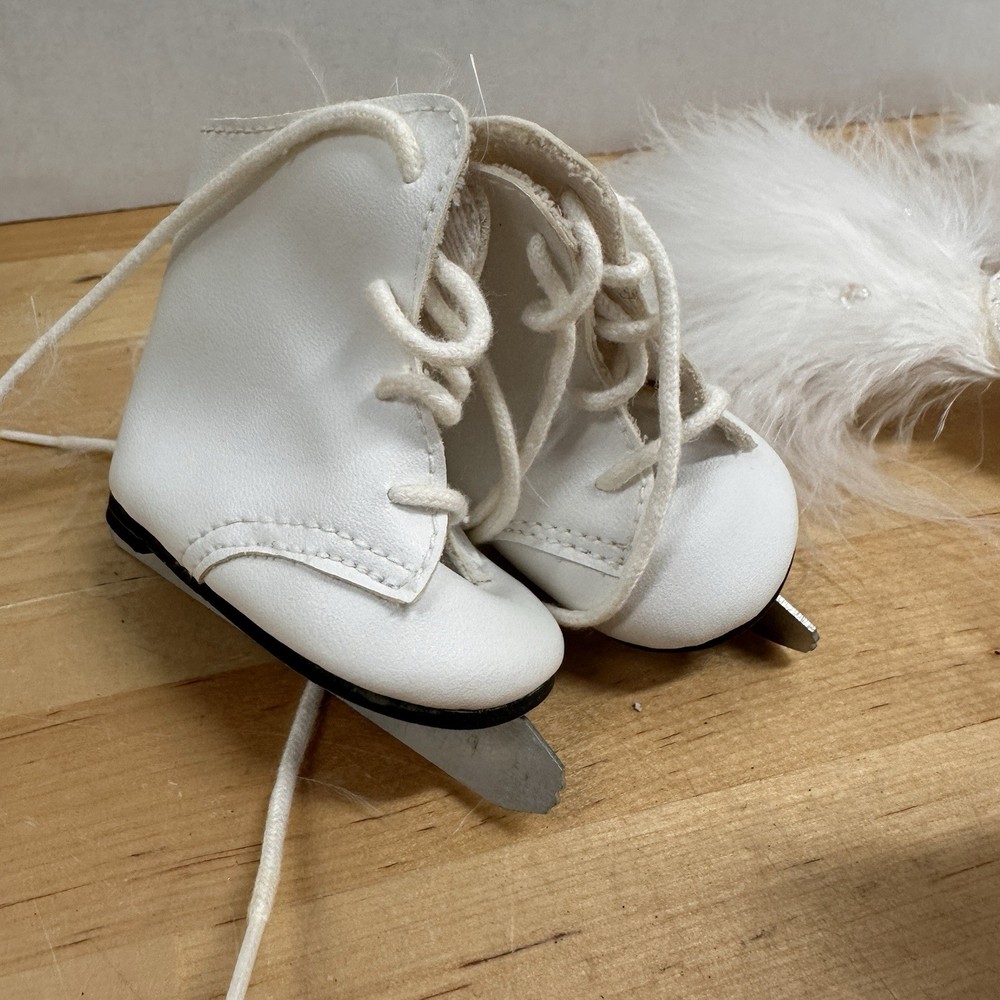 This American Girl doll outfit is perfect for any ballet enthusiast. The set includes a beautiful white dress and skates, with intricate details that capture the essence of Swan Lake. The dress features layers of flowing fabric and a delicate tiara. The brand is American Girl, known for their high-quality clothing and accessories for dolls. The set is a great addition to any doll collection and is perfect for imaginative play.