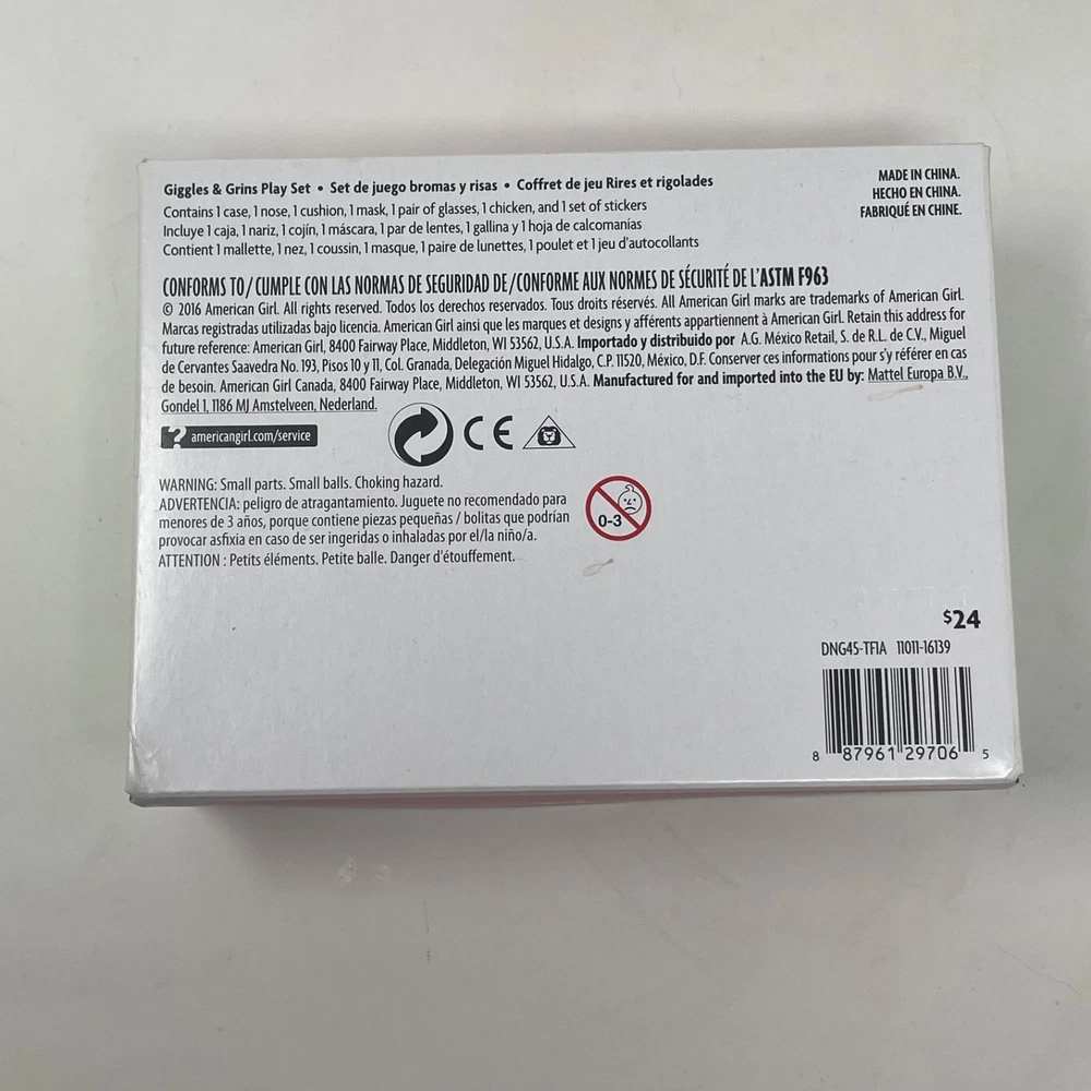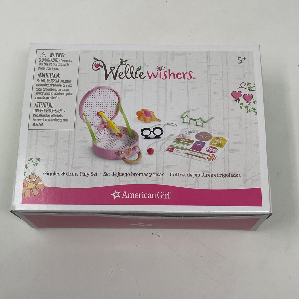 American Girl Doll Wellie Wishers "Giggles and Grins" Play Set Released - 2016 Retired - 2018 "Giggles and Grins" Play Set in Original Box!!! Includes: Original Box, Mask, Clown Nose, Prank Cushion, Rubber Chicken, Glasses and Travel Case. Set is complete and in excellent condition. Please refer to the images as they are part of the description. Feel free to contact me with any questions. Doll Not Included