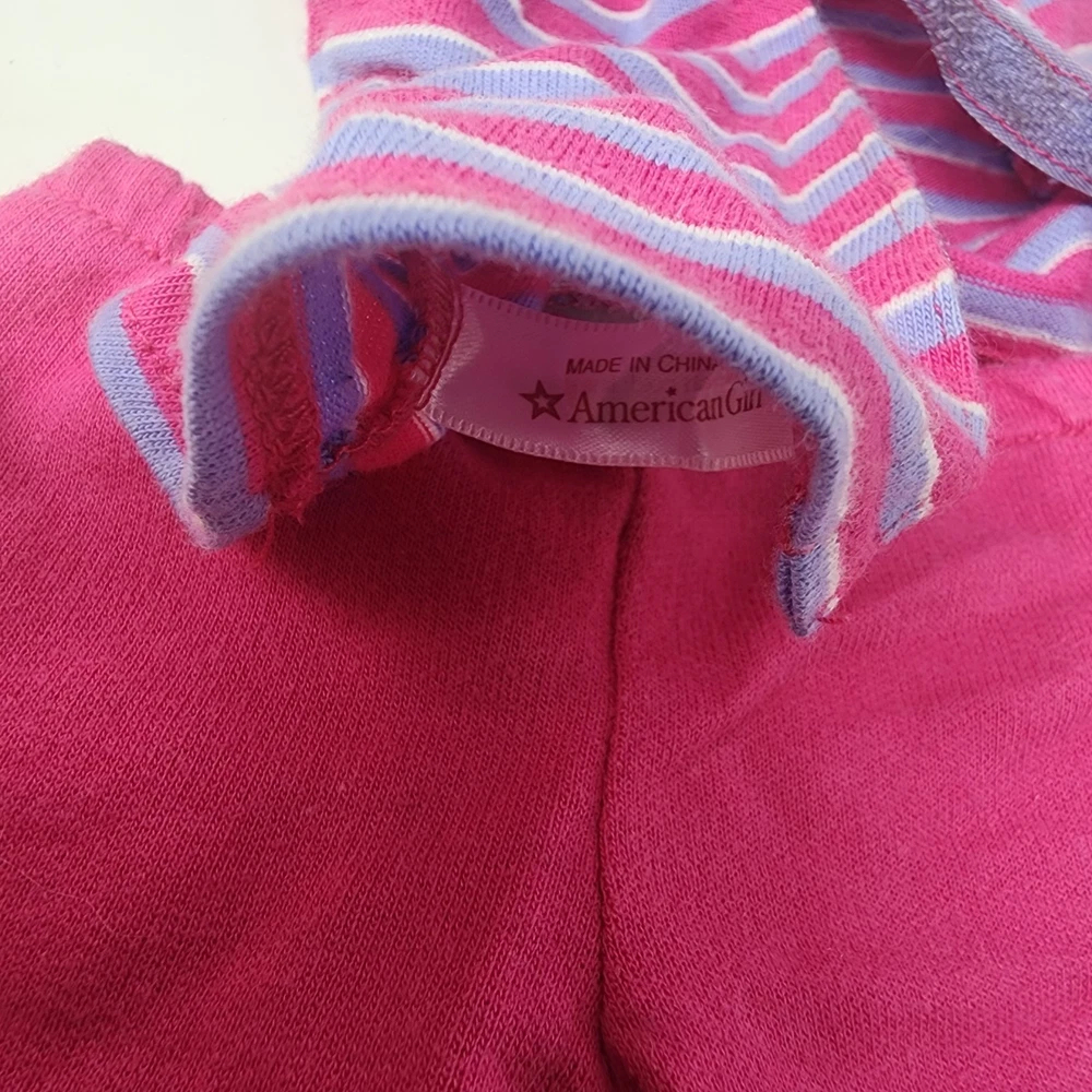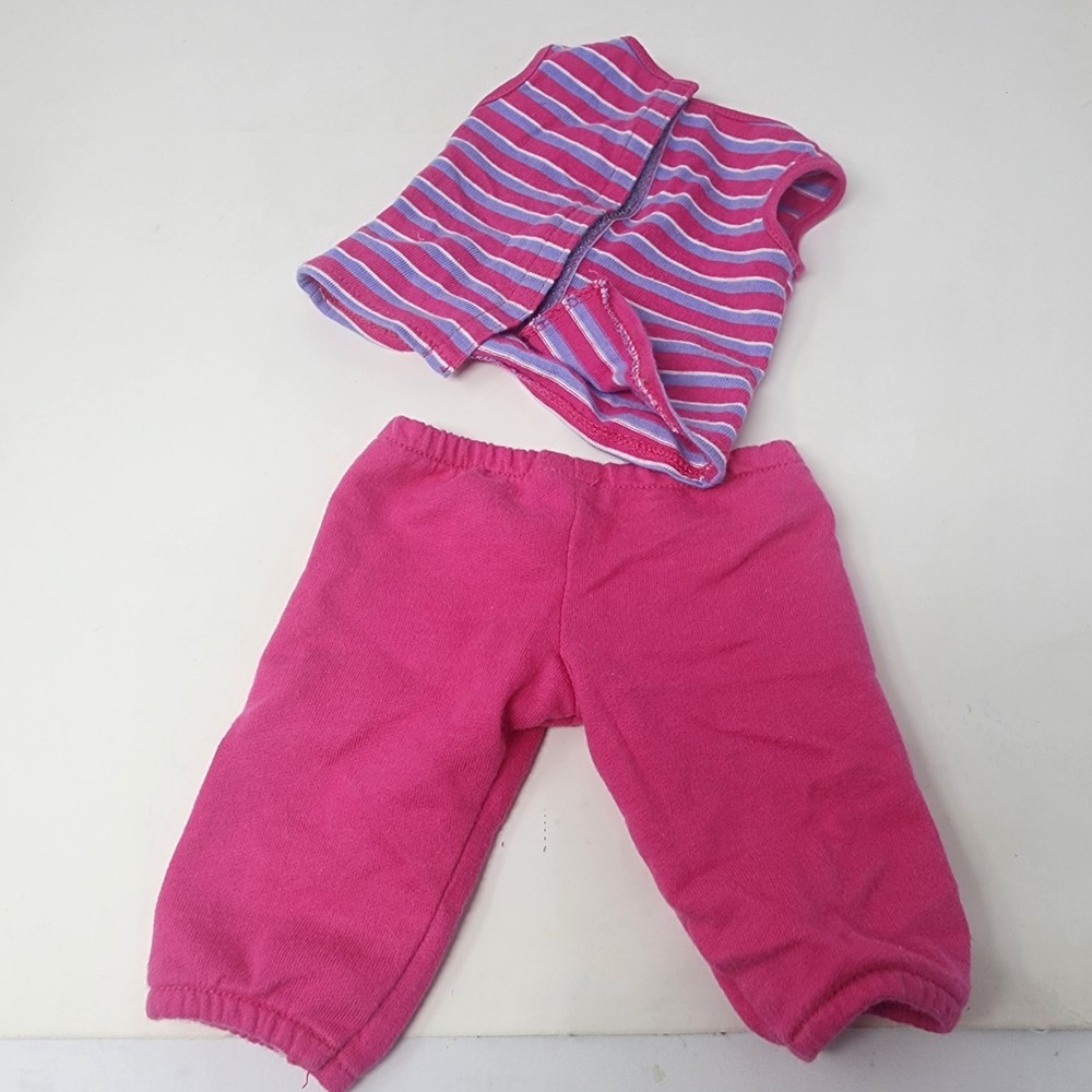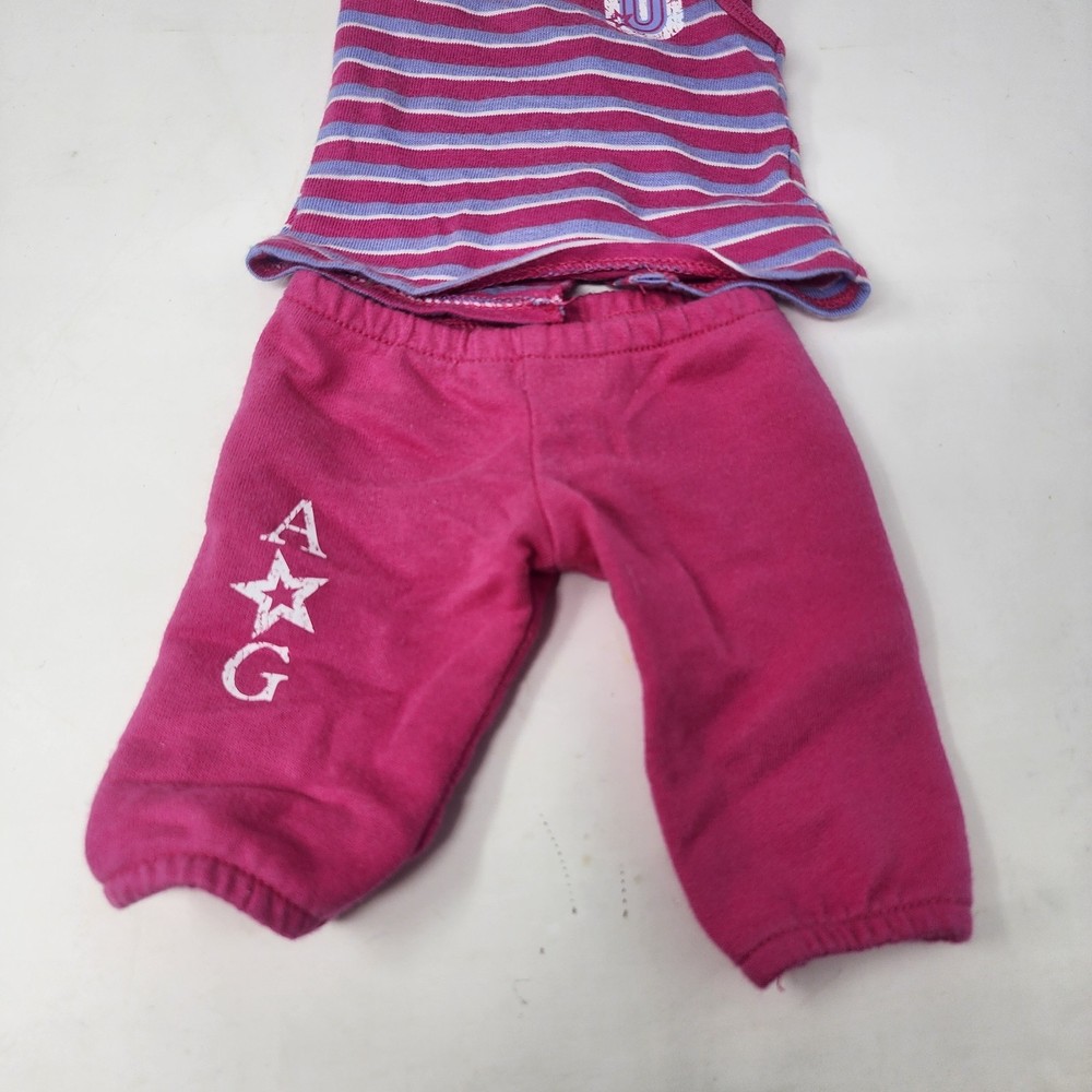 Brand: American Girl Set Includes: Outfit, Pants, Top Country of Origin: China Doll Gender: Girl Doll gtin13: n/a Type: Clothing Vintage: No Item Height: 18 in Seller Notes: “good condition” UPC: n/a Clothing Type: Pants, Top Color: Pink