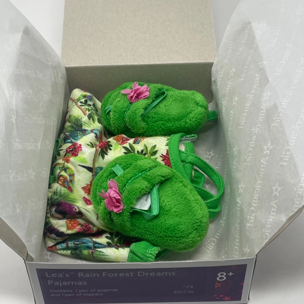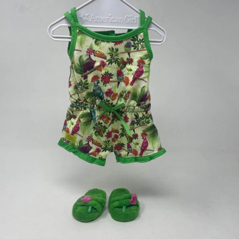 American Girl Doll Doll of the Year Collection "Lea's Rainforest Dreams Pajamas" Released - 2016 Retired - 2016 " Lea's Rainforest Dreams Pajamas " in Original Box!!! Includes: Original Box, American Girl Tissue Paper, Romper and Slippers Set is complete and in excellent condition. Please refer to the images as they are part of the description. Feel free to contact me with any questions. Doll Not Included