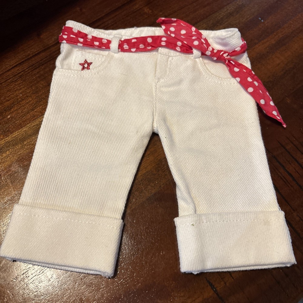 Dress your American Girl doll in style with this exclusive Scarf Capris Tees Mix & Match set, available only at the American Girl Place Store. This outfit is tailored for dolls with an 18-inch size, and it's perfect for those who love to mix and match to create unique looks. The set includes a charming red top and pants, allowing your doll to showcase a vibrant and playful wardrobe. Crafted with care by the renowned brand American Girl, this clothing set is designed to fit girl dolls of various types, including play dolls. The high-quality materials and attention to detail ensure that the clothes are both durable and delightful. Whether it's for a special occasion or for everyday fun, this set promises to add a touch of whimsy to your doll's collection.