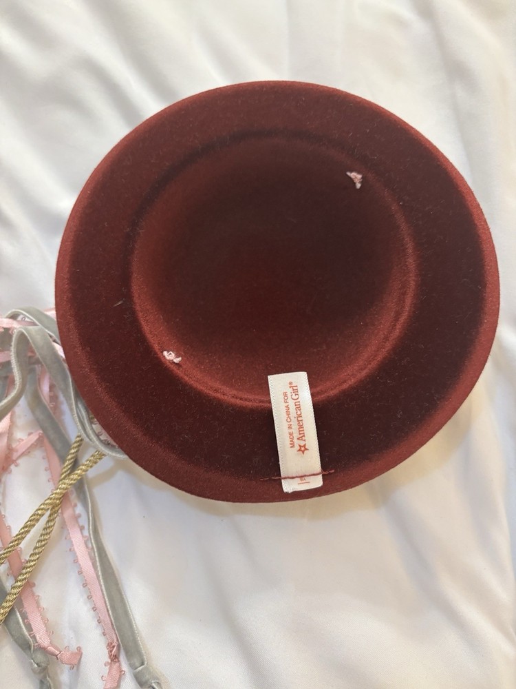 From Samantha meet outfit. Hat is American girl tag. Very good quality- only flaw is the unravel of one strand.