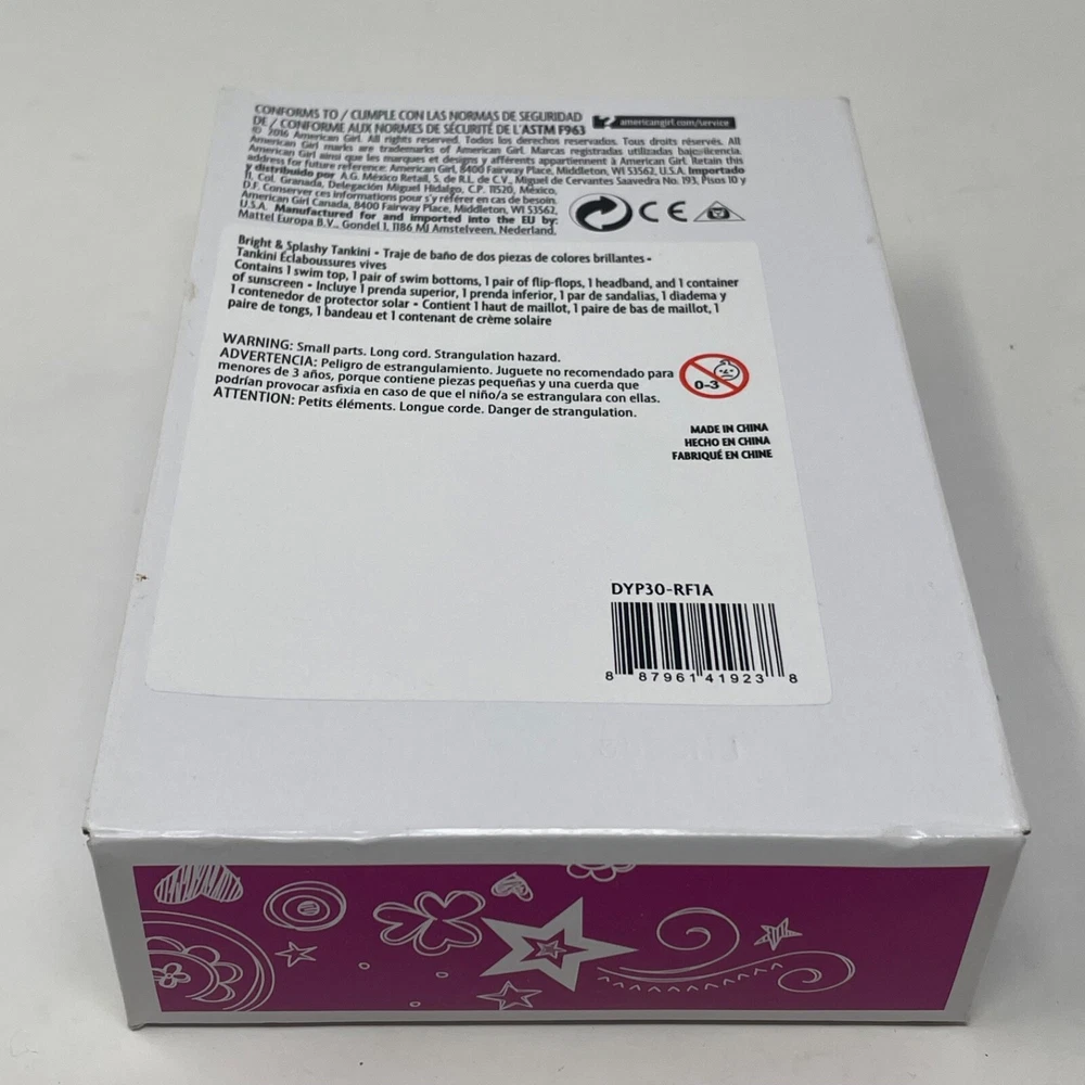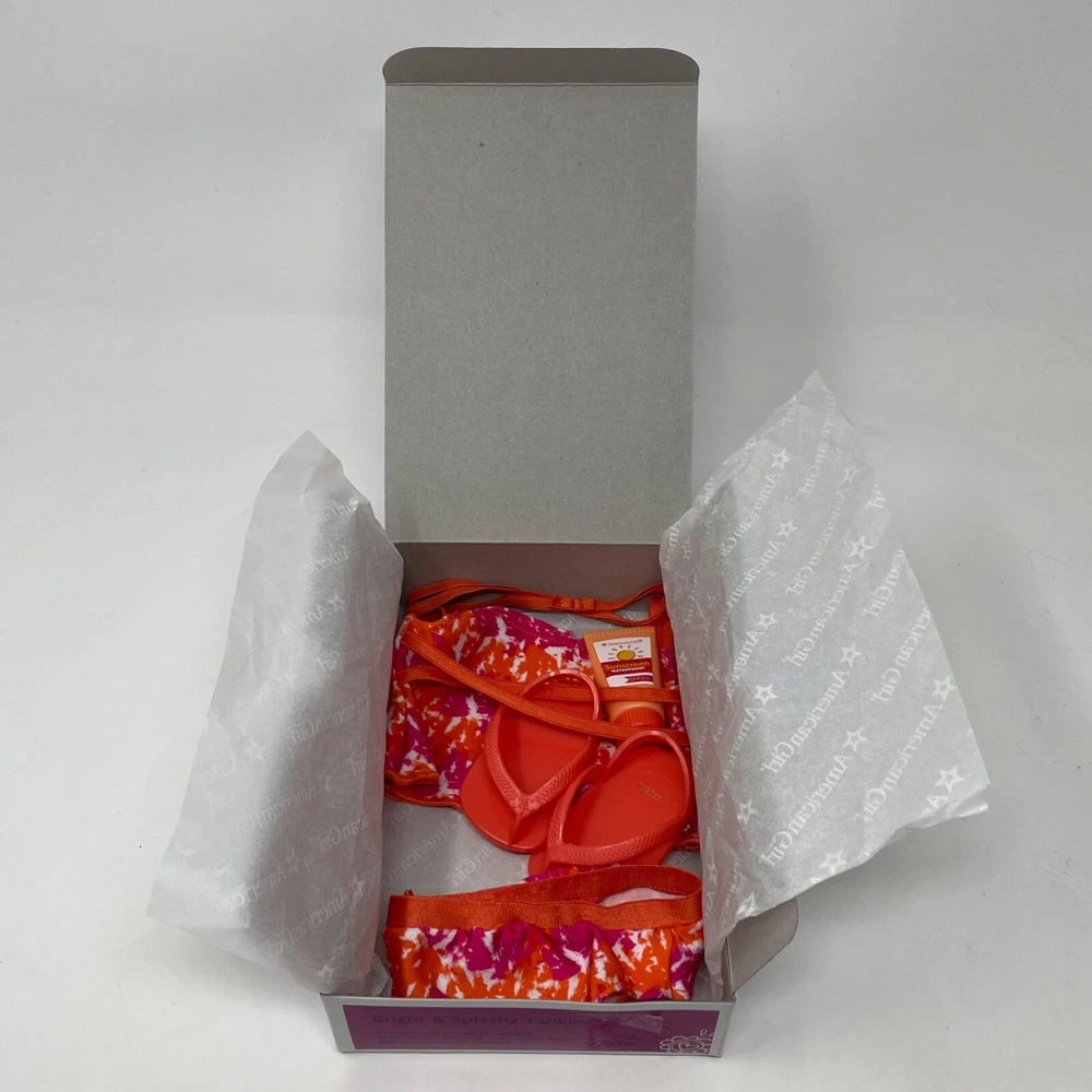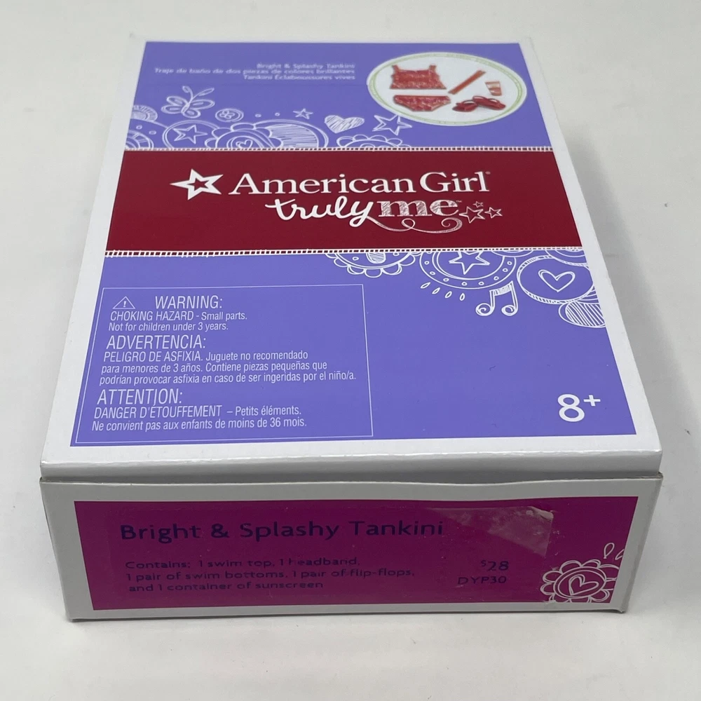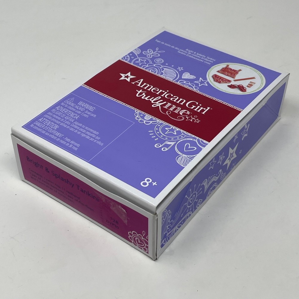 American Girl Doll Truly Me Bright and Splashy Tankini Released - 2017 Retired - 2019 This "Bright and Splashy Tankini" Set comes in Original Box!! Includes: Original Box, American Girl Tissue Paper, Tank, Bottoms, Flip-Flops and Sunscreen Please refer to the images as they are part of the description. Feel free to contact me with any questions. Doll Not Included