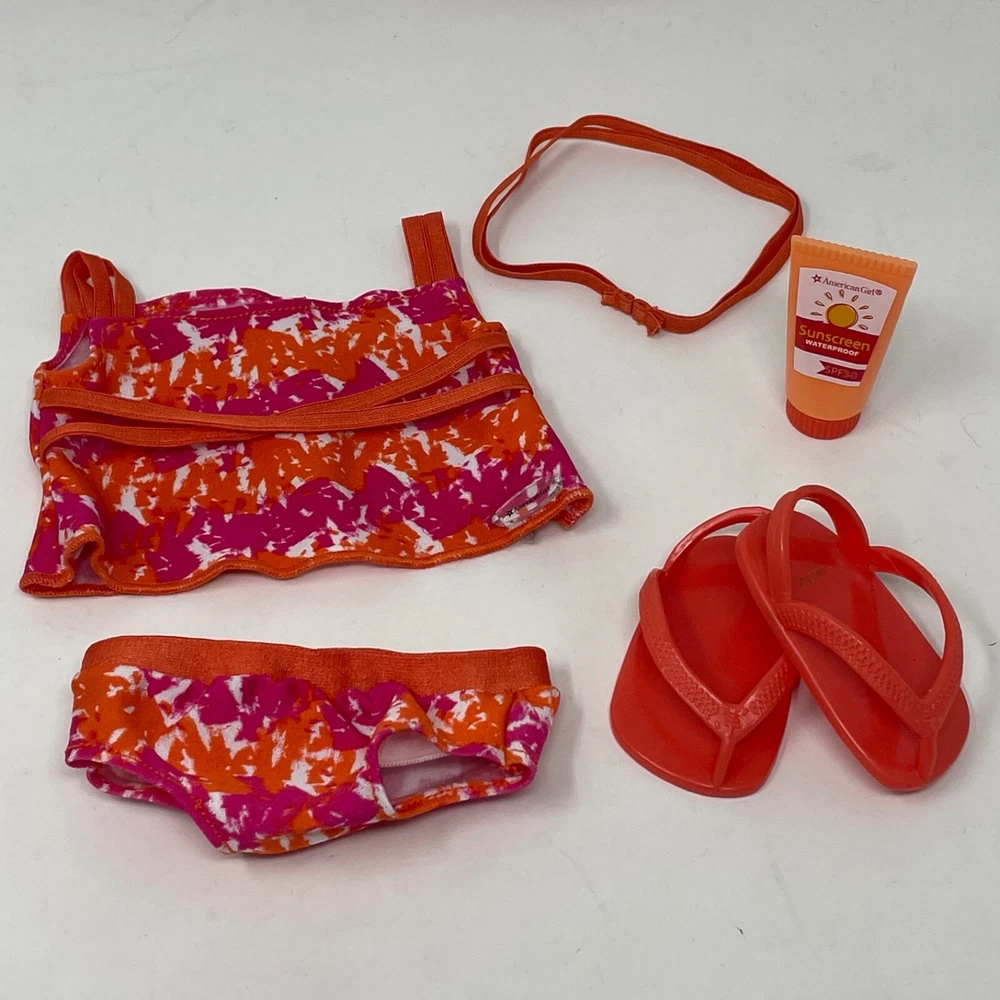 Time Period Manufactured: 2010-2019 Doll Type: Play Doll Clothing Type: Swimwear Number of Pieces: 6 Set Includes: Hair Accessories, Shoes, Swimwear, Top Character: Truly Me Just Like You Original/Licensed Reproduction: Original Type: Clothing Doll Gender: Girl Doll Compatible Doll Size: 18 in Brand: American Girl Color: Orange Year Manufactured: 2017