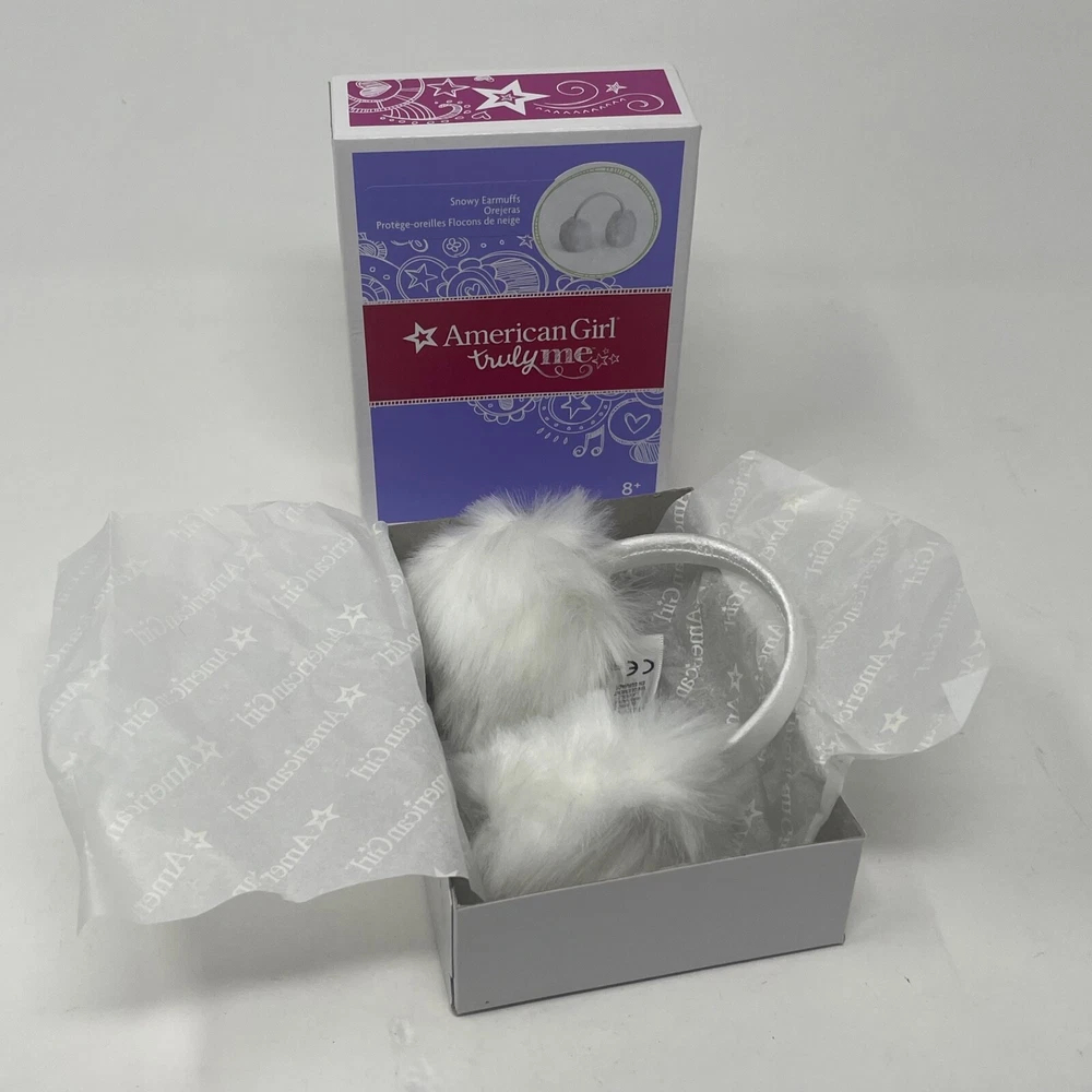 American Girl Doll Truly Me "Snowy Earmuffs" Released - 2012 This "Snowy Earmuffs" comes in Original Box!! Includes: Original Box, American Girl Tissue Paper and White Fluffy Earmuffs Please refer to the images as they are part of the description. Feel free to contact me with any questions. Doll Not Included