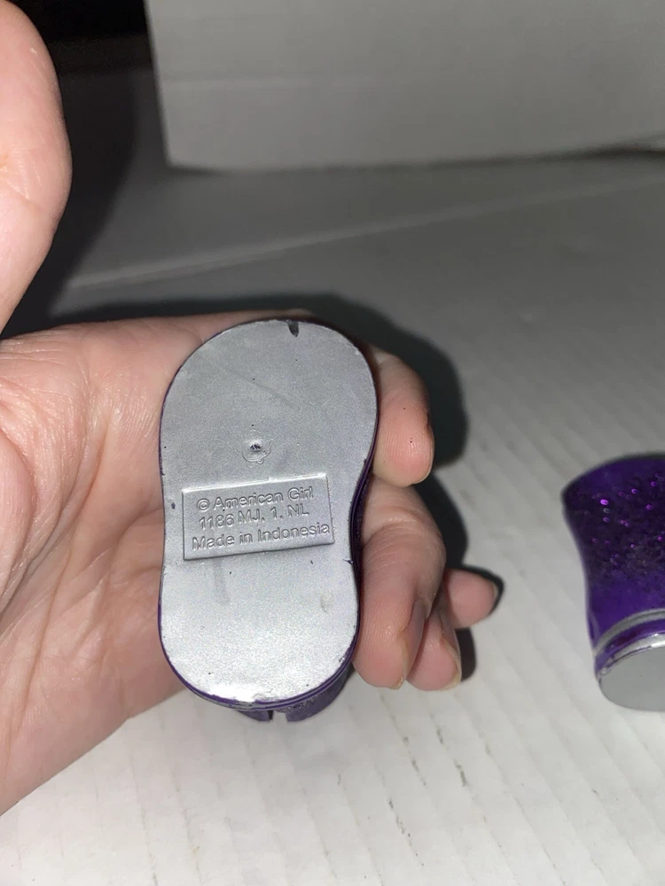 Doll Type: American Girl Clothing Type: Boots Material: Glass Brand: American Girl Set Includes: Boots and Glasses Type: Clothing Color: Purple